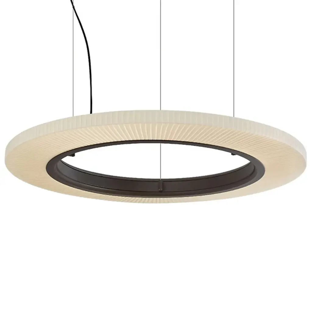 Introducing the beautifully crafted Roda S/90 Horizontal LED Pendant by Bover. Perfect for illuminating your contemporary living room, this stylish pendant is made from durable aluminum and steel, and brilliantly designed with an alluring ring shape. The Globe/Circle shade made up of Ribbon material captures the essence of its design while offering a soft, warm LED lighting to your space. Thanks to its hardwired system type, your bedroom, kitchen, or office will shimmer with a glamorous, modern touch.