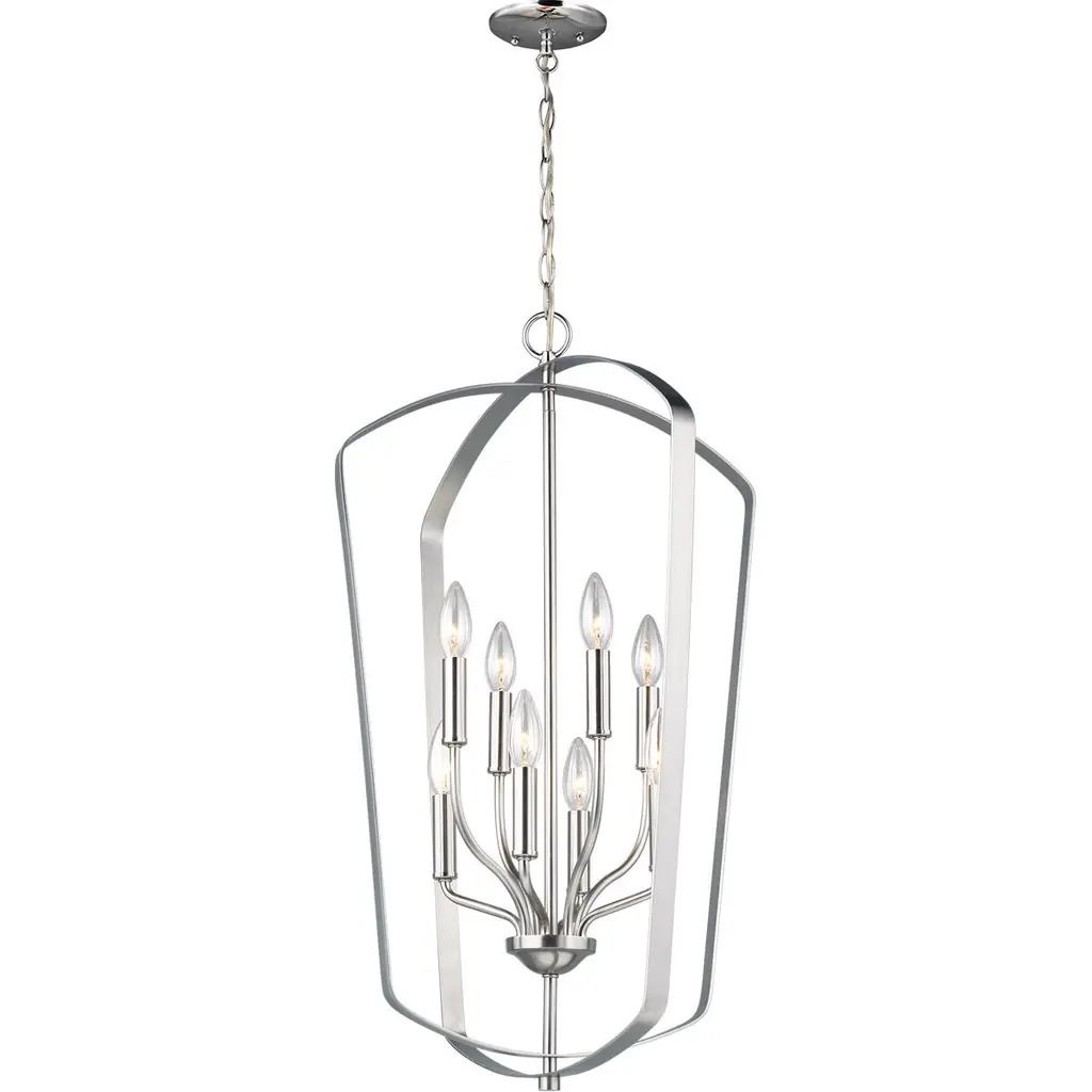 The Romee eight light indoor pendant in brushed nickel provides abundant light to your home, while adding style and interest. The Romee series is a playful, yet simple spin on the classic lantern. With clean lines and elegant lamping holders makes Romee the perfect addition to any space without taking the spotlight from the decor, but will illuminate with superb class.