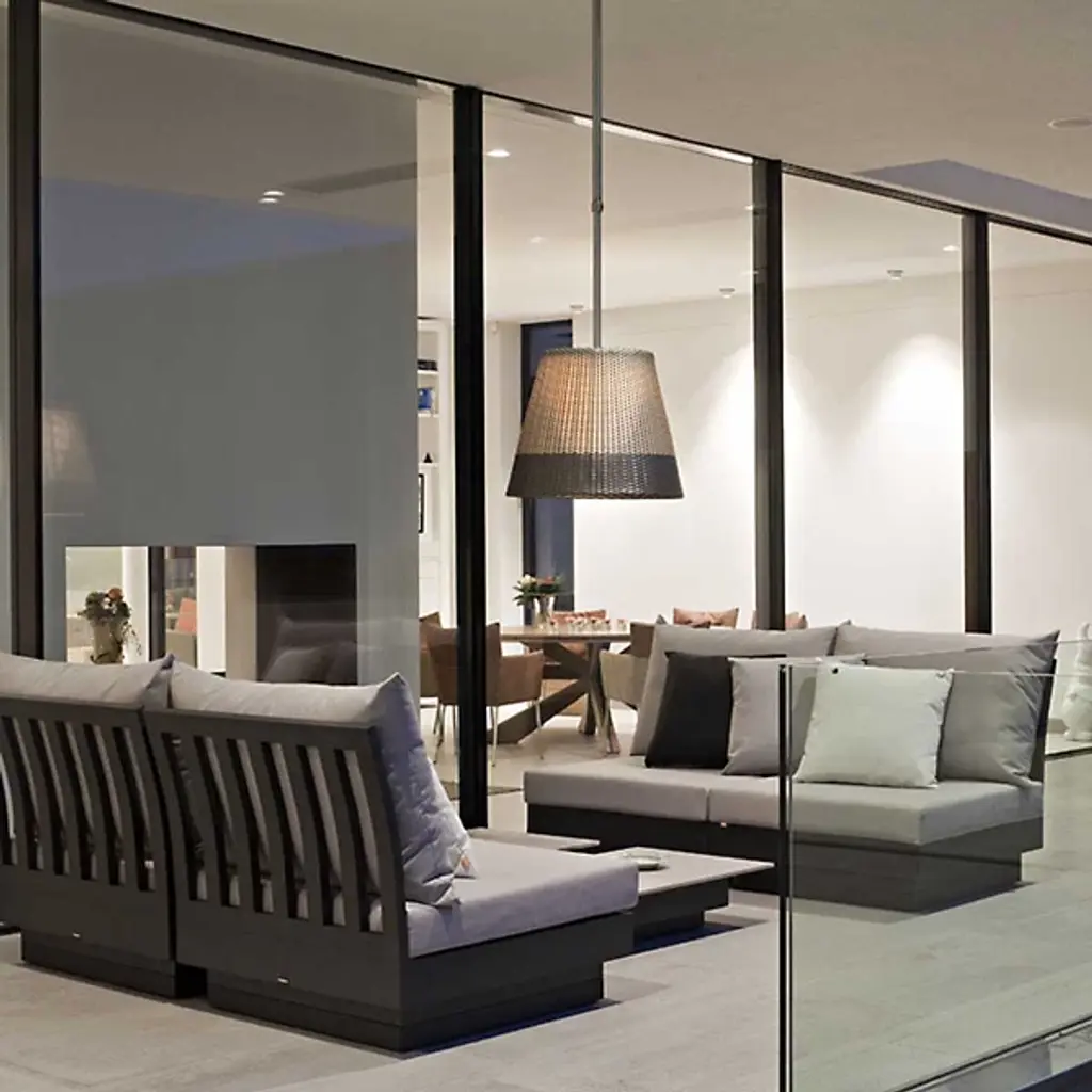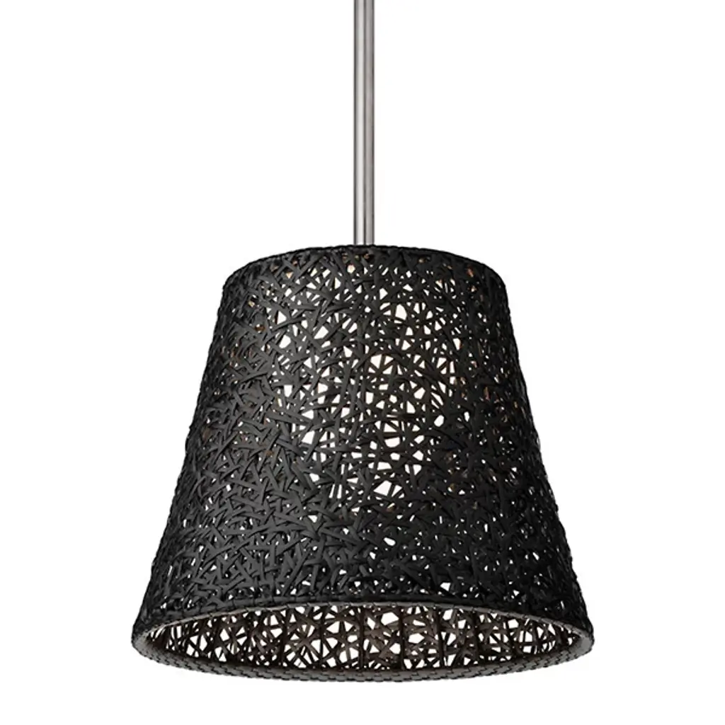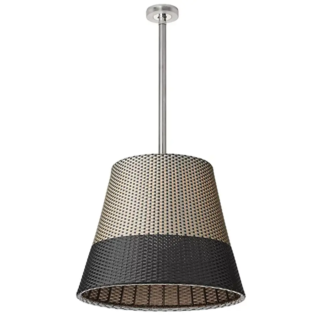 Highly textural and durable, the Flos Romeo Outdoor C3 Pendant is a substantial fixture that will enhance your outdoor space with style and function. The large tapered shade is comprised of woven PVC tubes, which not only provide all-weather protection but also add an attractive aesthetic that fits casual and elegant settings. Each component from the semi-transparent shade to the long polycarbonate diffuser within is treated for enhanced corrosion and weather resistance to ensure the longevity of the design.
