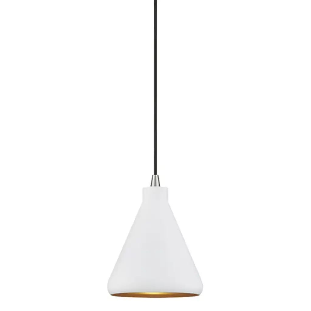 The eyes pick up on the familiar yet abstract curves of the dressy Rork Teardrop Mini Pendant from Alder & Ore. This piece does stylish modern design the minimalist way. Its low-profile canopy sets the tone by producing a shiny bold finish that’s reiterated in the seductive shade below. A fine cord suspension connects the similarly finished canopy and shade in a slender profile that works great over a bar or nightstand. The shade hangs effortlessly with sweeping curves that conceal the bulb’s bright glare. The shade funnels light through its narrow opening, giving the room an accenting down glow.