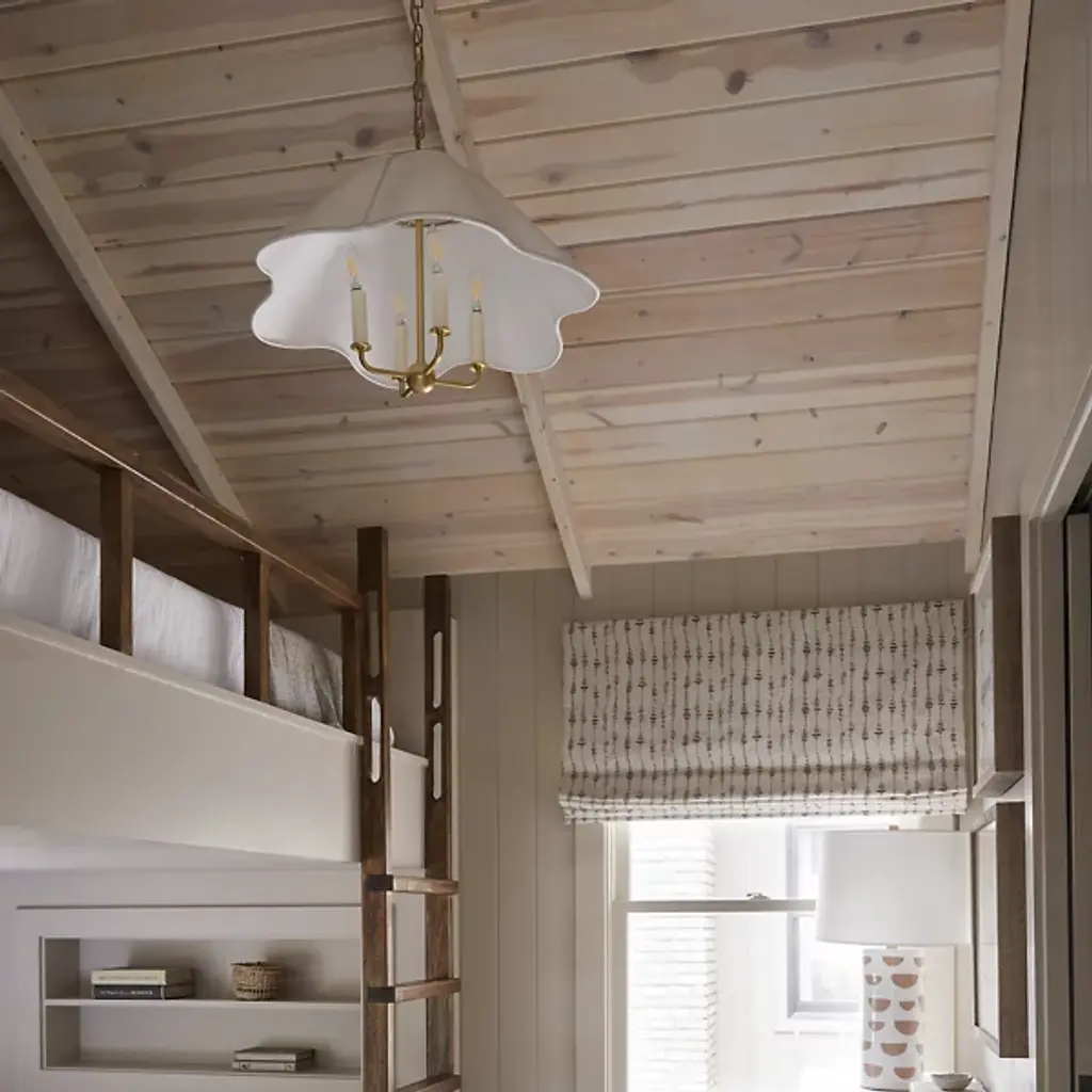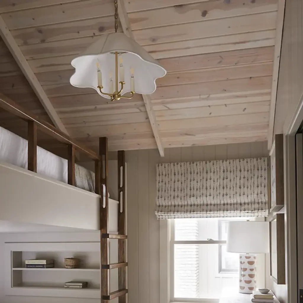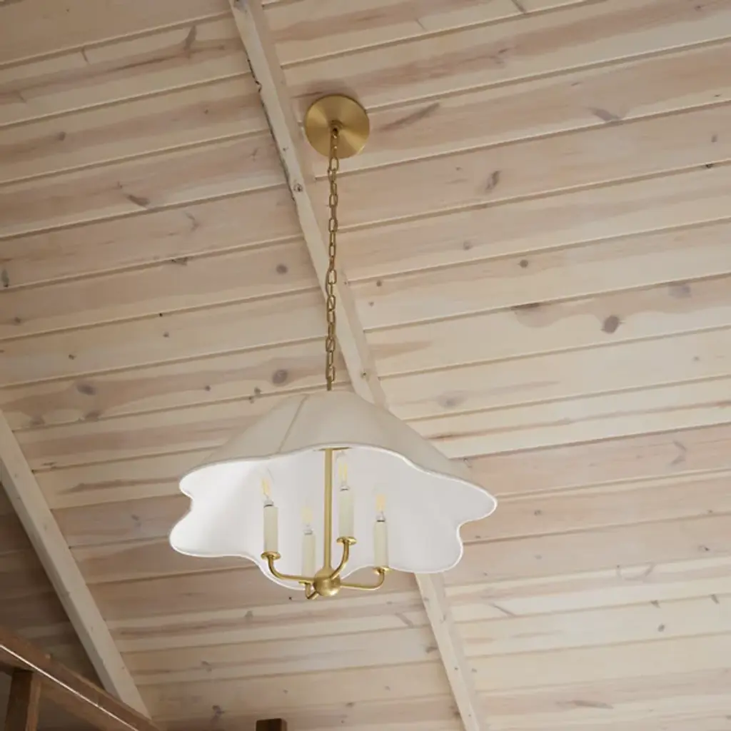 Presented by Mitzi, the Rosanna Pendant takes a traditional form and reimagines it with feminine accents. Scalloping on the fabric shade feels fresh while light beautifully diffuses through its body of it, breathing new life into the storied silhouette. The exposed candelabra base peeks through the shade, shining in a brilliant, aged brass finish.
