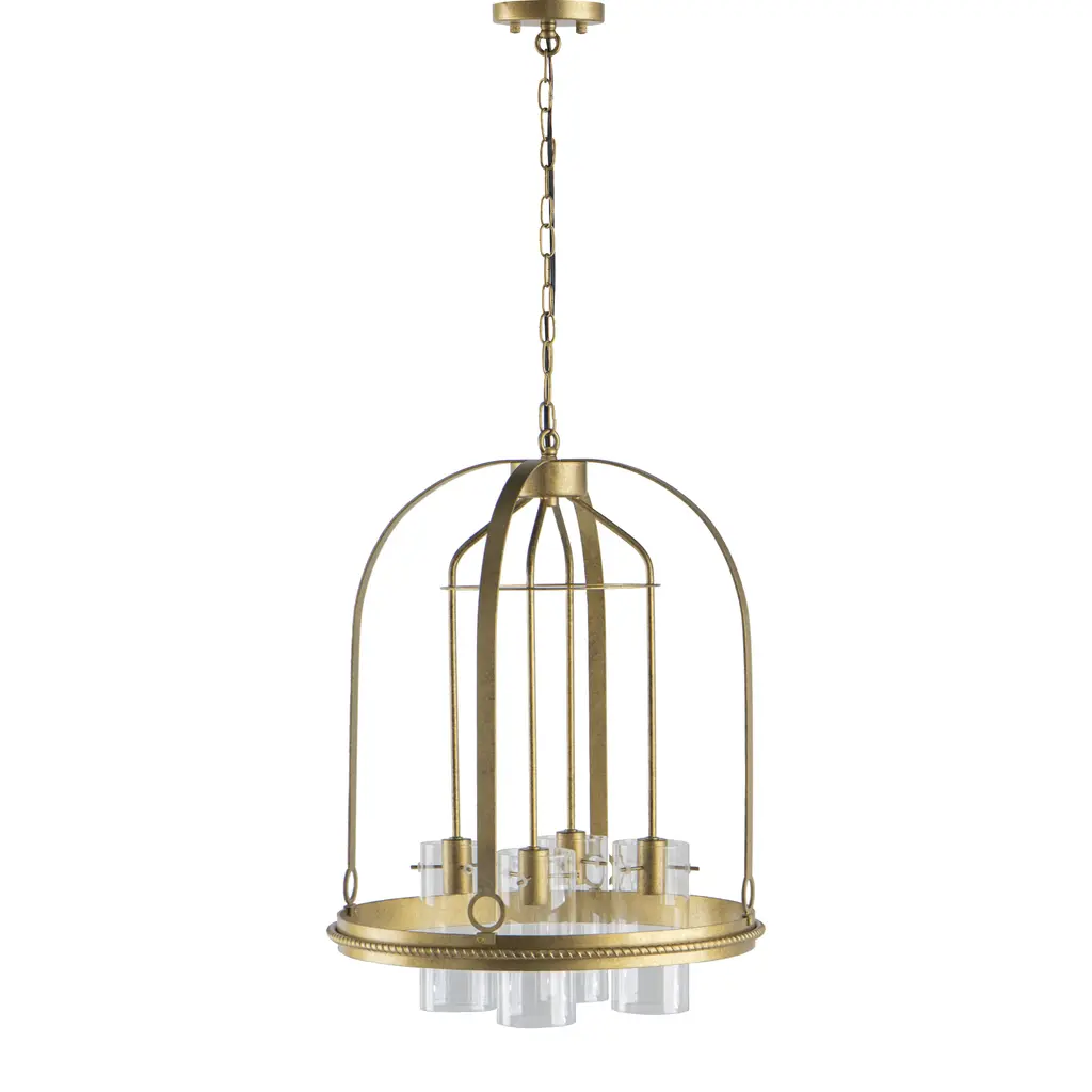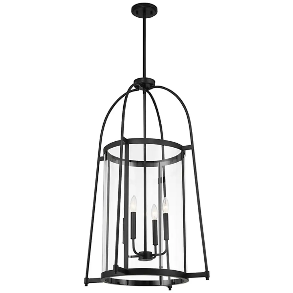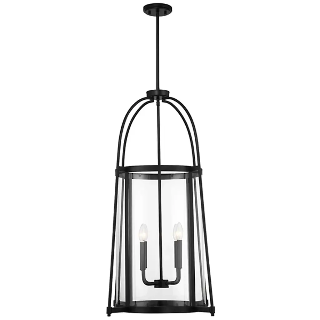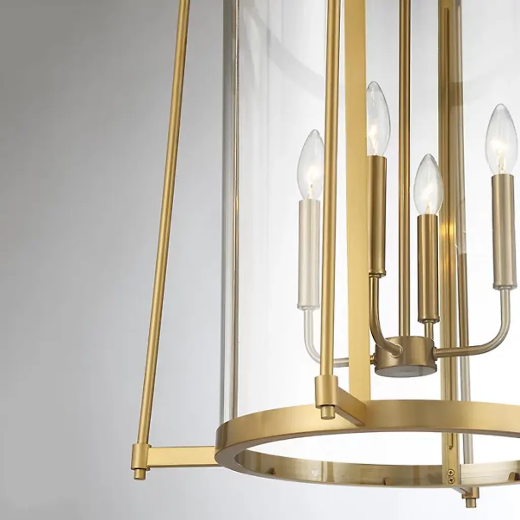 The Rosedale Pendant from Savoy House adds a sophisticated geometric presence to any space with its transitional style. The pendant matches modern elegance with vintage character. It is an open fixture made from slim metal structural elements featuring a cylindrical clear glass shade around candelabra lamping. The metal elements complement the transparency of the glass, creating a striking yet subtle lighting solution perfect for enhancing the aesthetic of any room.