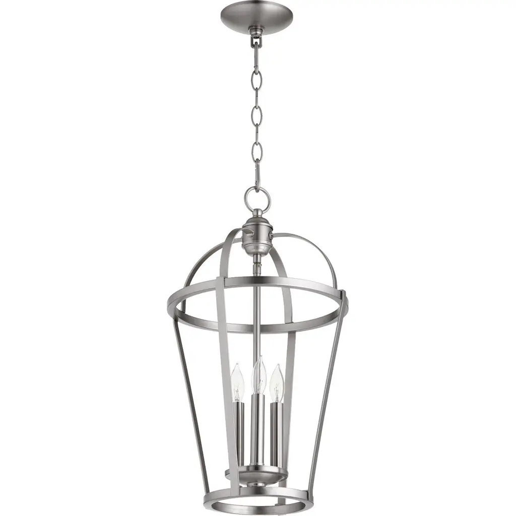 An aesthetic aged to perfection. Lantern-inspired and carefully wrought, the Rossington Mini Pendant by Quorum International has the vintage appeal of a genuine antique fixture, plus the reliability and versatility of a modern design. This compact multi-light pendant fits virtually any interior design, adding a handsome crown over a table for two, intimate seating area or living room nook.