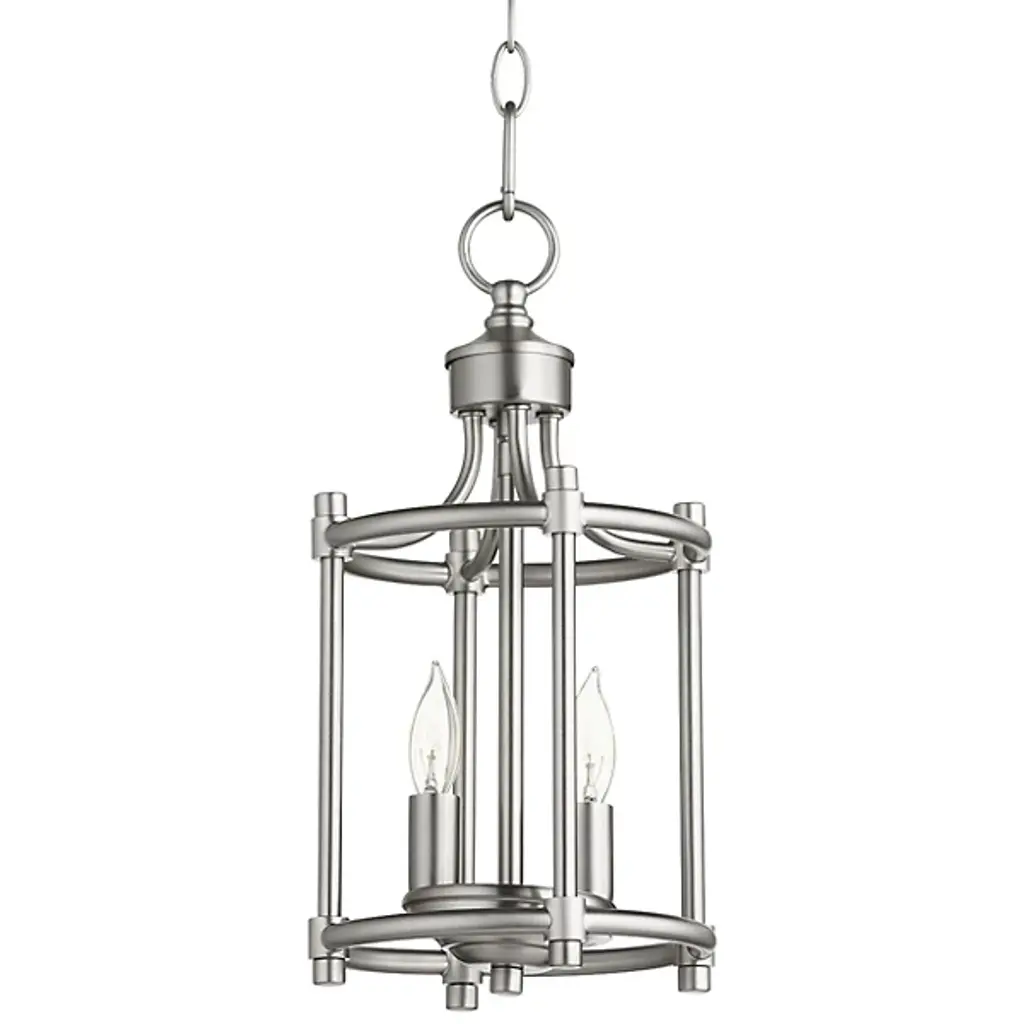 An aesthetic aged to perfection. Lantern-inspired and carefully wrought, the Rossington Mini Pendant by Quorum International has the vintage appeal of a genuine antique fixture, plus the reliability and versatility of a modern design. This compact multi-light pendant fits virtually any interior design, adding a handsome crown over a table for two, intimate seating area or living room nook.