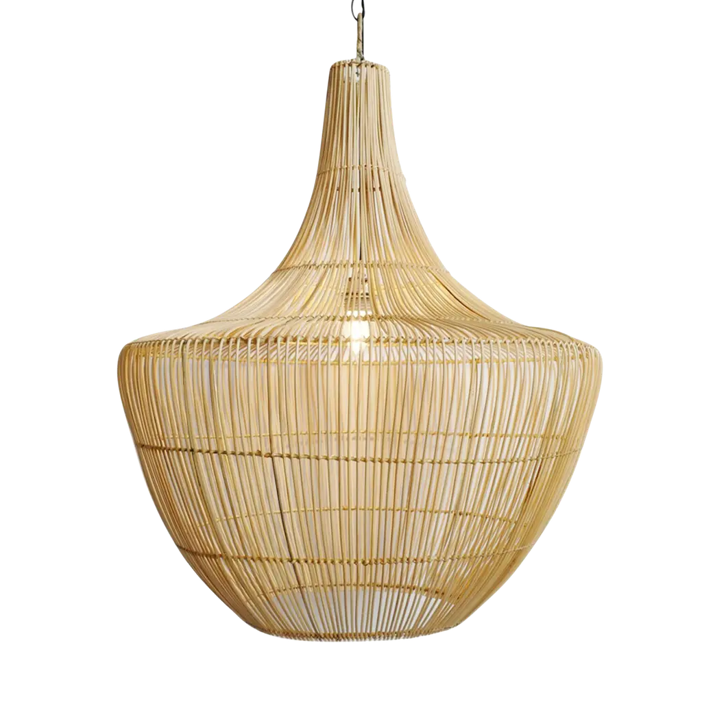 The Rotanga rattan pendant is entirely hand-woven by Indonesian craftsmen. Its silhouette is inspired by the star shape of the Goa apple. Generously sized, it provides both general illumination and soft light. As soon as night falls, its texture gives your rooms a new architectural and vegetal dimension. An AMPM exclusivity, full of life and naturalness.Hand-woven rattanE27 lamp holderFor bulb (not included): E27 LED 60WCompatible with bulbs of energy classes A to E.Electrical system not includedCompatible with electrical kit Sevigni.