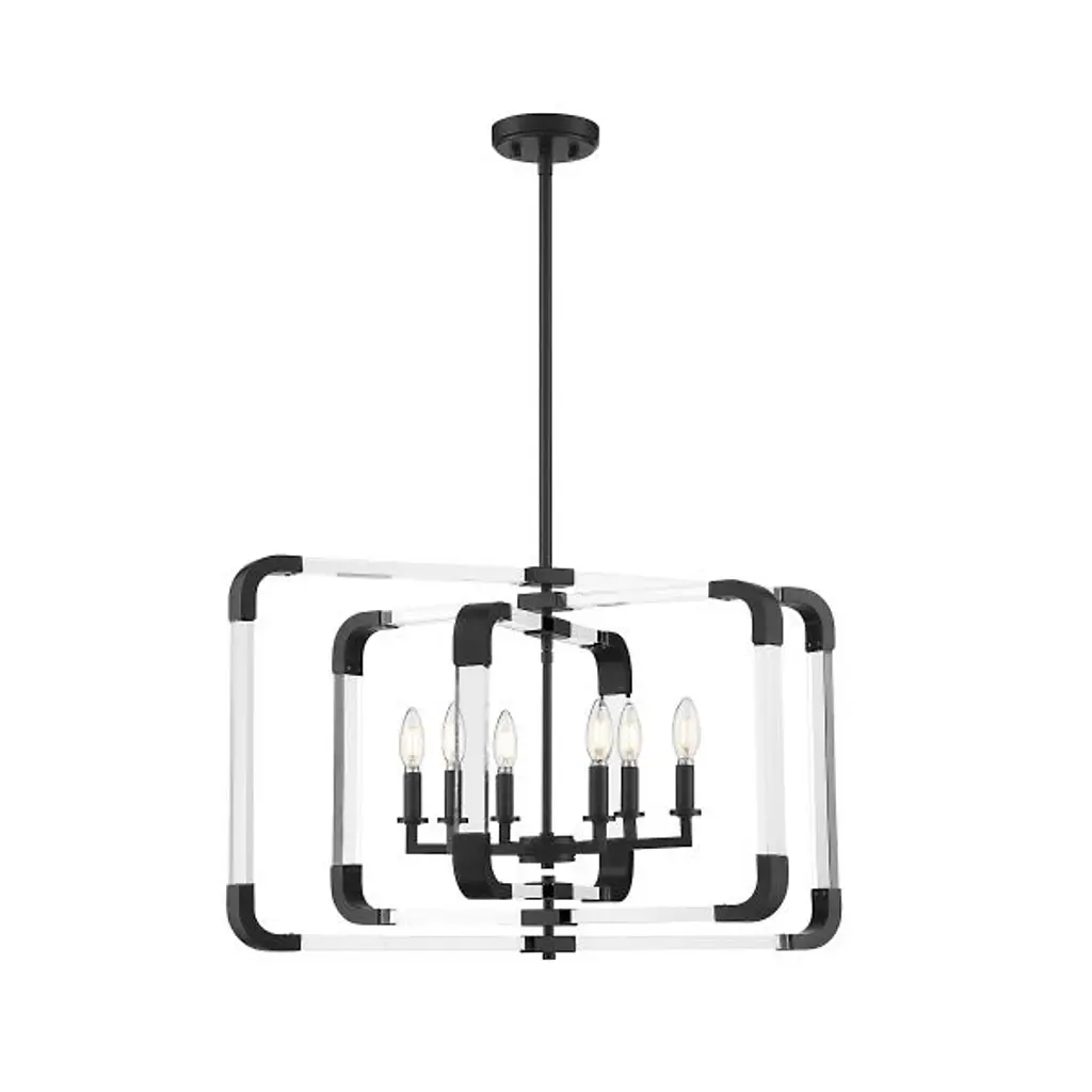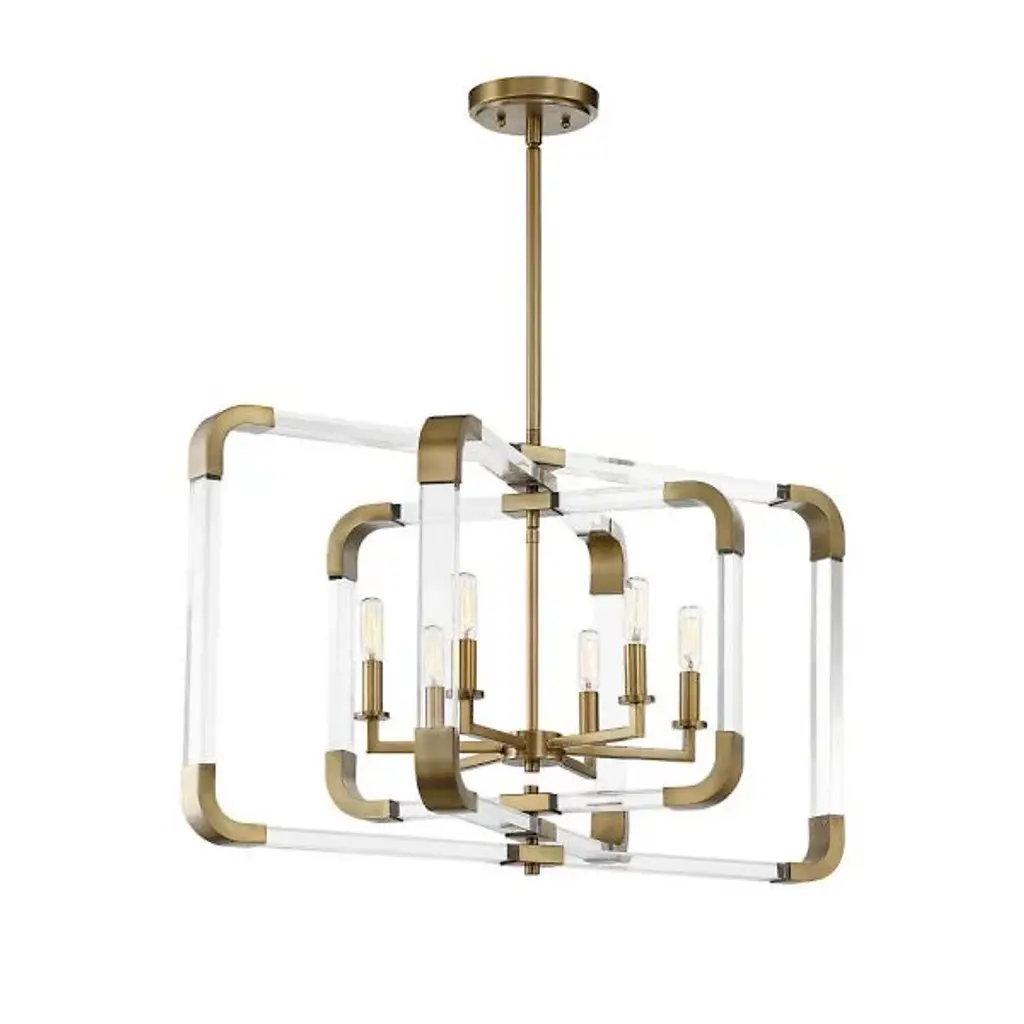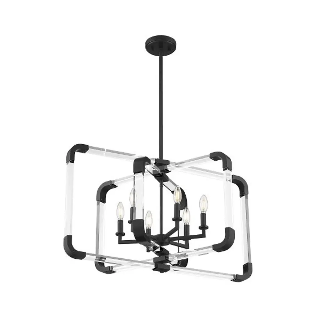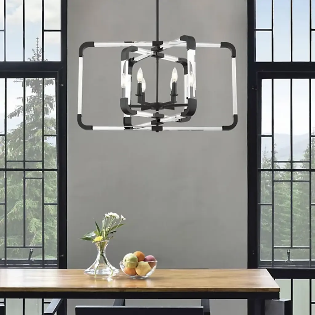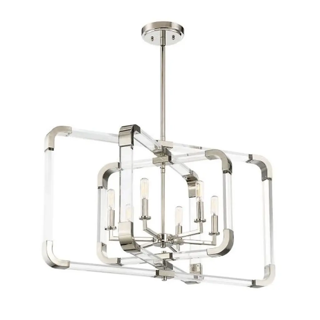 Fancy and flexible, Savoy House’s Rotterdam Rectangular Pendant uses posable frames of clear acrylic held together by smooth metal corners to draw attention to the open lamping. Set into sleek metal candelabra-style sockets pointing upward from a central hub, the Rotterdam’s structure is adjustable at your discretion and leaves the decision to slightly obscure its light at your discretion. An excellent choice to accent contemporary décor in larger living spaces, particularly over tables or counters.