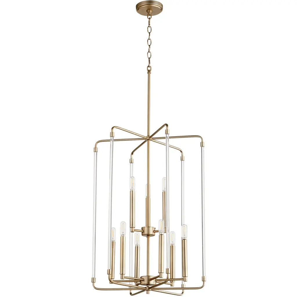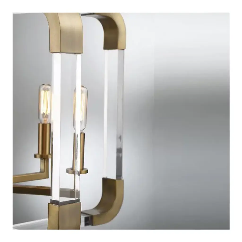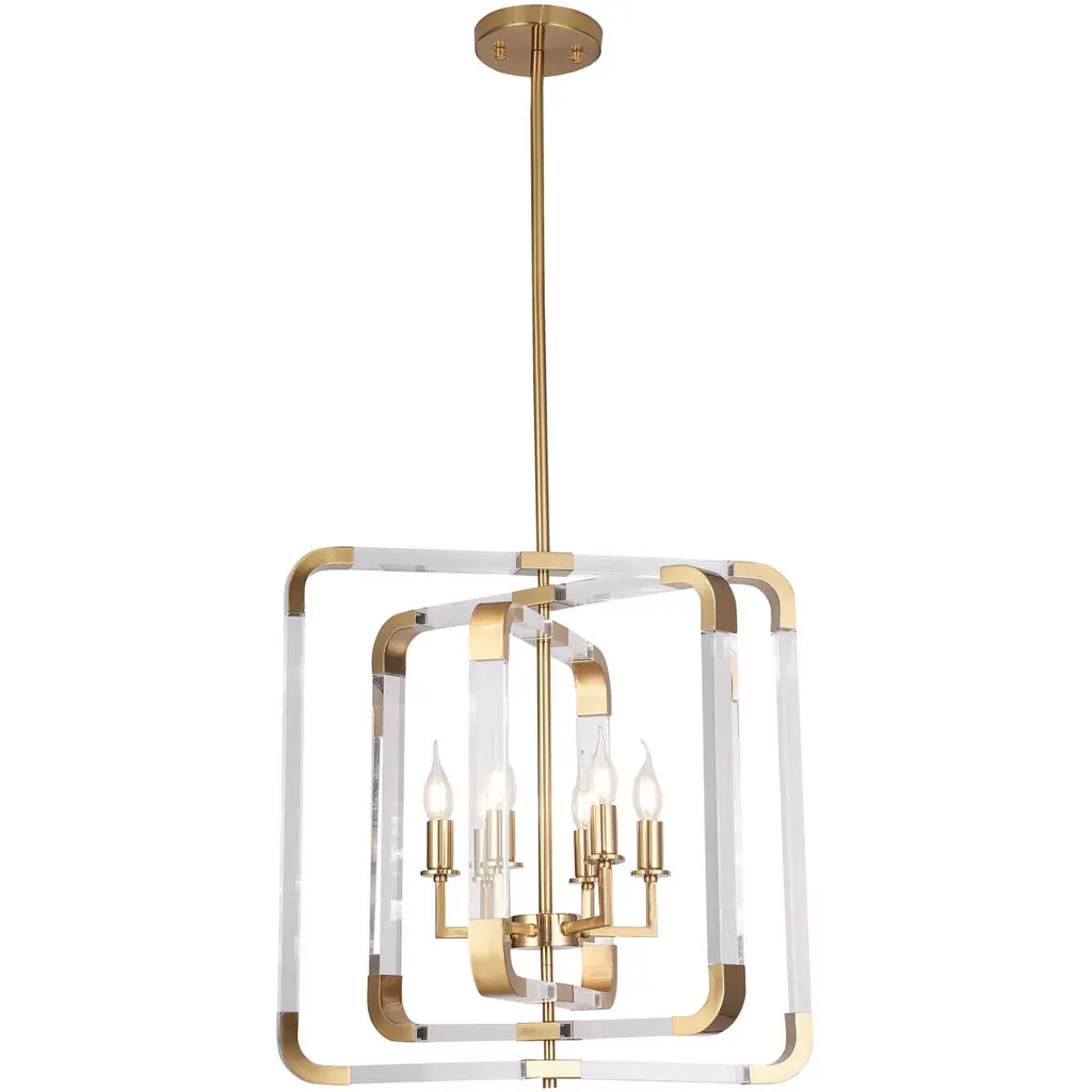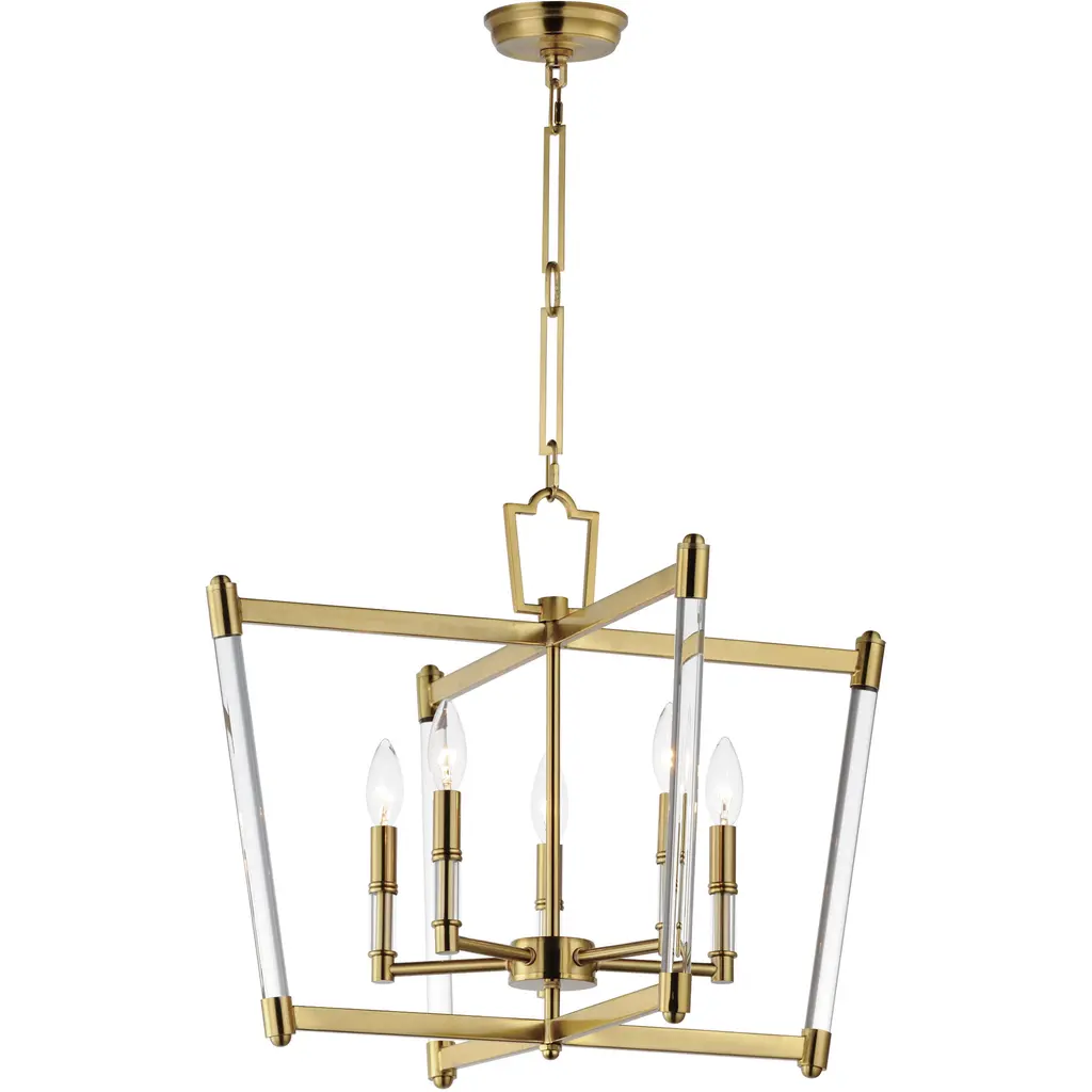 Fancy and flexible, Savoy House’s Rotterdam Rectangular Pendant uses posable frames of clear acrylic held together by smooth metal corners to draw attention to the open lamping. Set into sleek metal candelabra-style sockets pointing upward from a central hub, the Rotterdam’s structure is adjustable at your discretion and leaves the decision to slightly obscure its light at your discretion. An excellent choice to accent contemporary décor in larger living spaces, particularly over tables or counters.