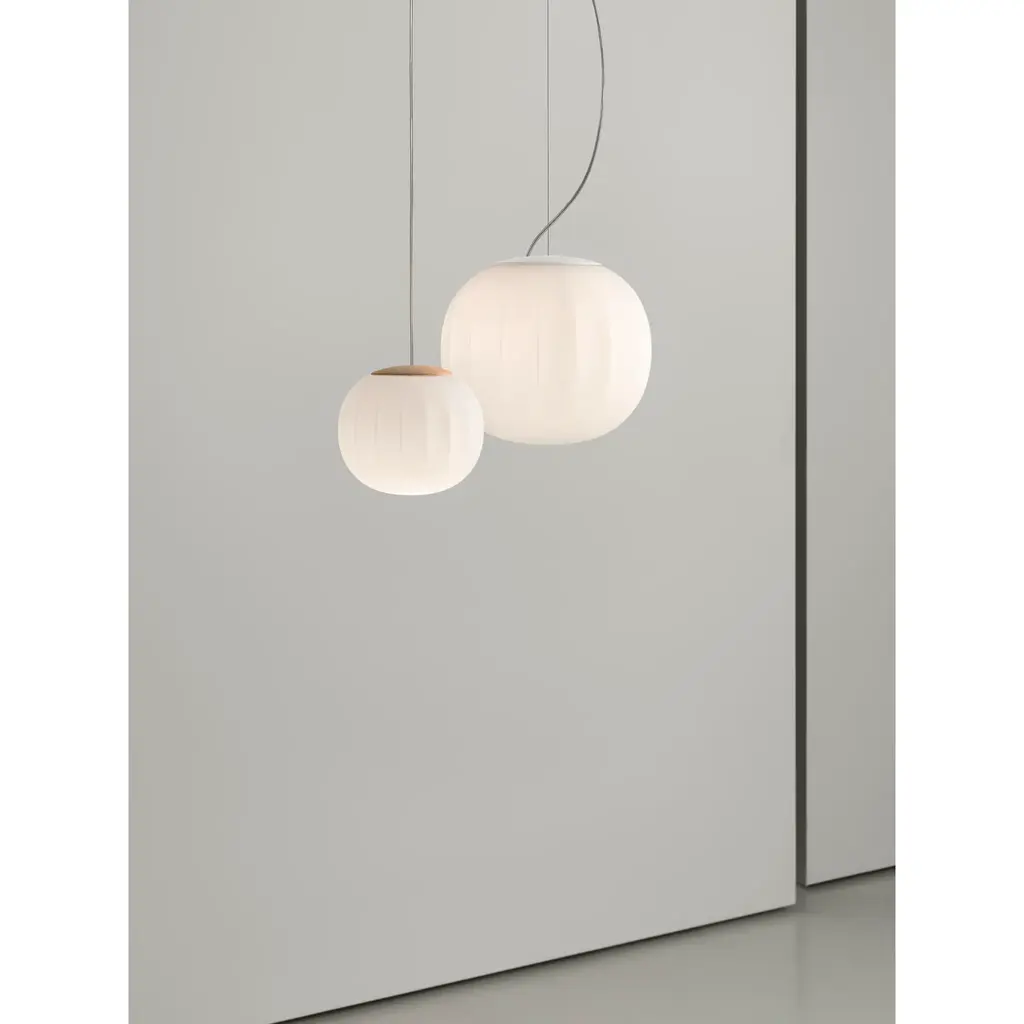 Elevate your space with the exquisite Luceplan Lita Pendant Light. Crafted with a diffuser of opaline blown glass and a wooden structure, it exudes a timeless elegance. Scanned by gentle vertical cusps, the glass surface offers a tactile and visual delight. Available in a luxurious brass finish, this light adds a refined touch to any room.