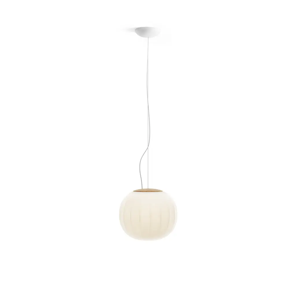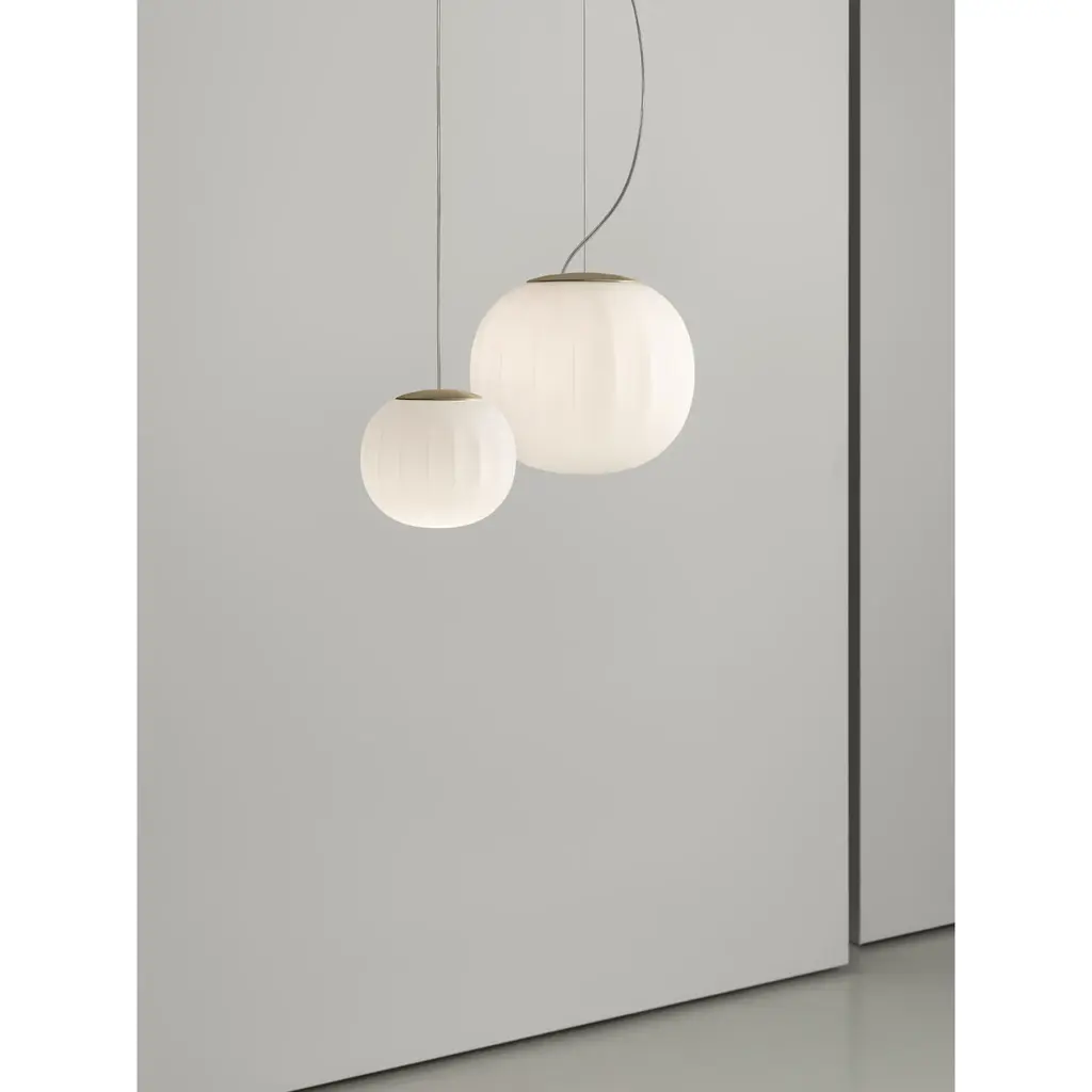 Elevate your space with the exquisite Luceplan Lita Pendant Light. Crafted with a diffuser of opaline blown glass and a wooden structure, it exudes a timeless elegance. Scanned by gentle vertical cusps, the glass surface offers a tactile and visual delight. Available in a luxurious brass finish, this light adds a refined touch to any room.