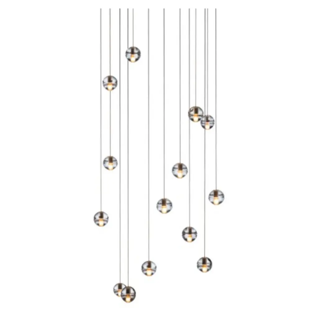 14.14 Round Pendant by BocciDimensions: D50.8 x H300 cmMaterials: white powder coated round canopyWeight: 37 kgAvailable: Round and Rectangle version.All our lamps can be wired according to each country. If sold to the USA it will be wired for the USA for instance.14.14 uses headphone jack connections, which allow the pendants to be “plugged into” the canopy for fast and easy installation. Pendant lengths are pre-set during production and are not site adjustable. There are two standard canopy options. Both options have a white, powder-coated finish.14 is an articulated, cast glass sphere with a frosted cylindrical void that houses either a low-voltage xenon or LED lamp. Individual pendants are visually subtle, but gain an atmospheric quality when multiplied and clustered in groups.Bocci is a design and manufacturing company based in Vancouver and Berlin. Founded in 2005 under the creative directorship of Omer Arbel, Bocci is committed to fostering a lateral and open-ended relationship between creative direction and Craft. The company launched with one lighting design, ‘14’, which became an instant Classic and remains a design staple and bestseller. Bocci’s growing portfolio of sculptural lighting is developed, engineered and fabricated in-house, through an infrastructure calibrated to provide full control over technique, quality and scale.In 2015, Bocci transformed a historic Berlin building into a showroom and archive. ‘Bocci 79’ inhabited a 2,200 m² / 23,600 sq ft former courthouse, constructed in 1896, and showcased over a decade of works by Omer Arbel, ranging from pieces in progress, prototypes and ideas, to the complete range of catalogue pieces developed for Bocci.