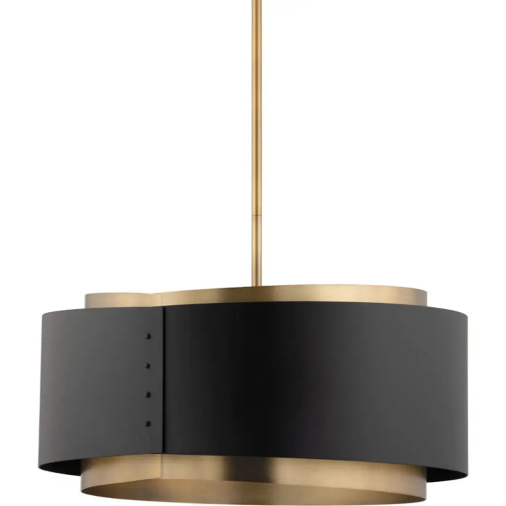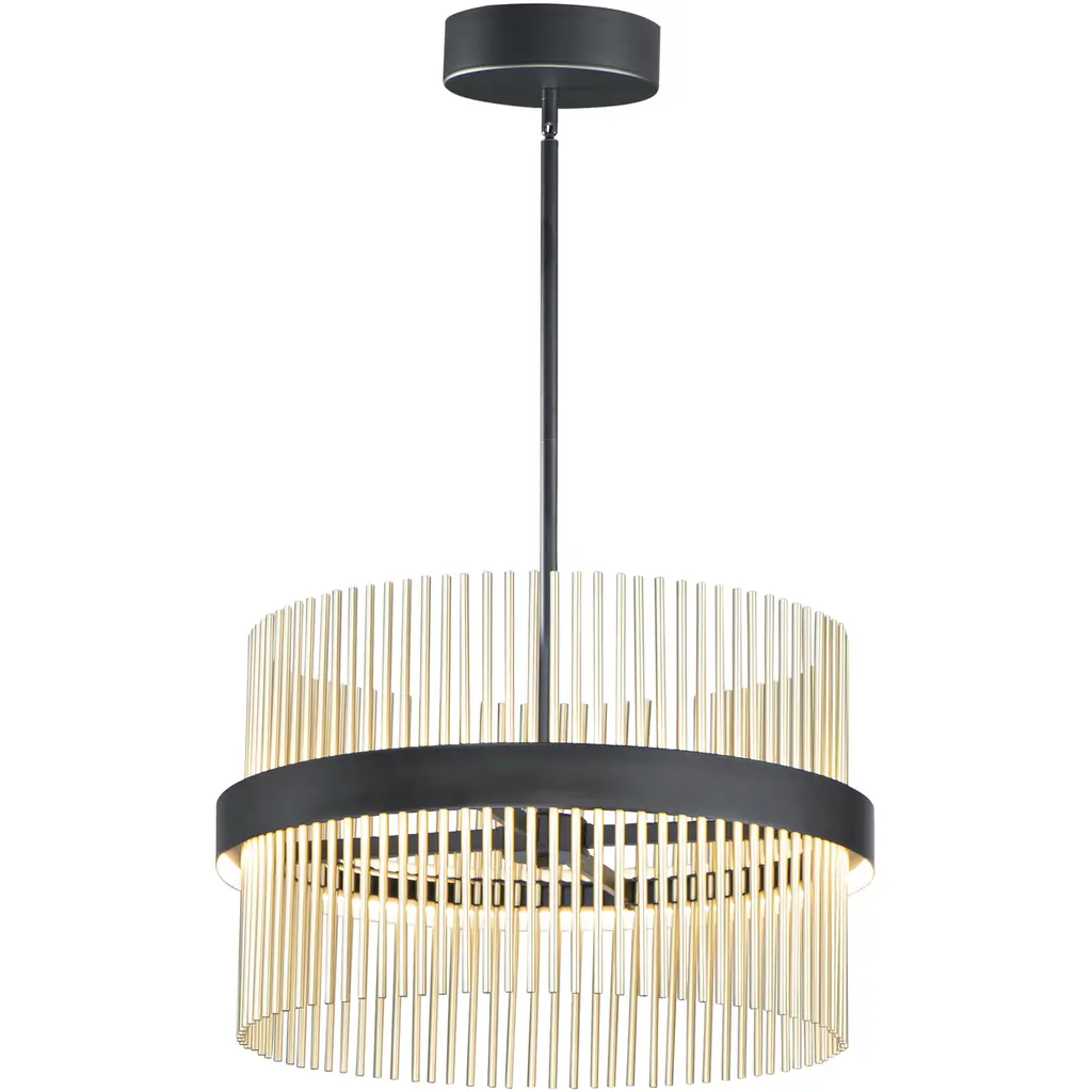 Refined and contemporary. The Roux Pendant from Troy Lighting brings a sartorial vibe through its banded metal shade. Designed by Colin King Studio, an elongated cylindrical frame gives this pendant an elegantly tailored look. When illuminated, the drum-shaped frame is illuminated by an LED lamp which casts mesmerizing light made dimmable with an ELV dimmer. Whether your hanging fixture is suspended above your dining table or kitchen island, Roux shines a light on sophisticated interior design.