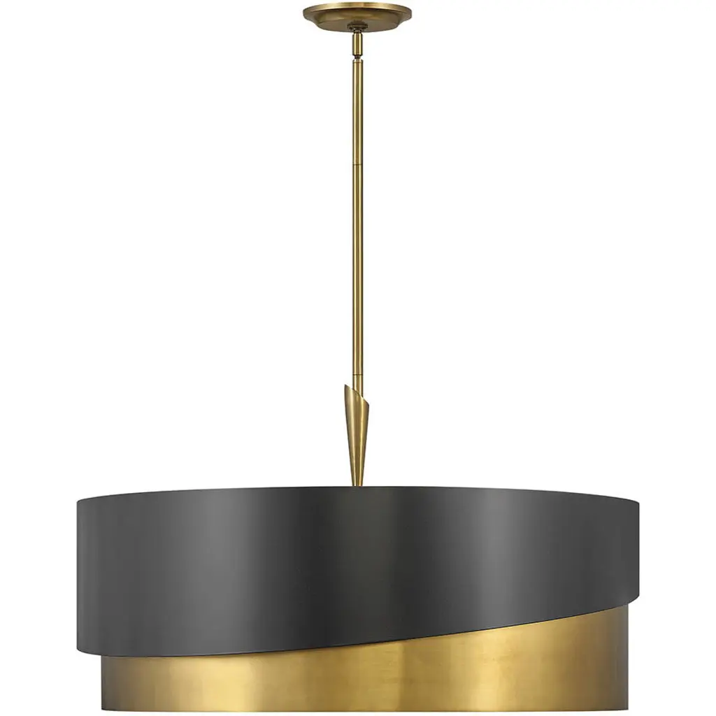 Colin King has emerged as a definitive voice in modern American design with a signature aesthetic that stems from a focus on visual storytelling. Bring a touch of luster to a modern space with the Roux pendant. The sweeping lines create a sense of motion and poise that catches the eye in patina brass. An outer matte black band adds an industrial edge to this stunning pendant design.
