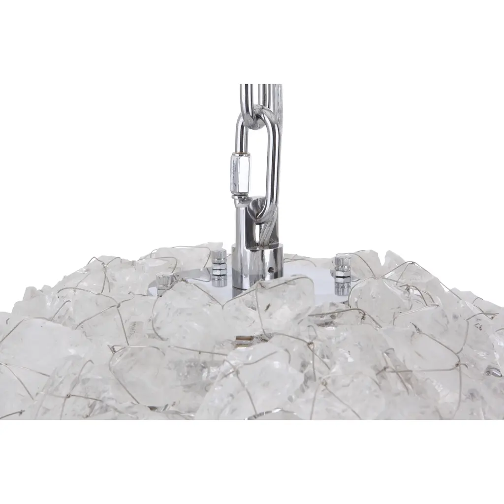The spectacular, natural beauty of the Roxx lighting series will leave you awestruck. The natural rock crystal is bound around a gilded or chrome finished frame. Available in three sizes, the Roxx can be featured as a sublime standalone piece or clustered together for celestial ambiance. The Roxxs divine craftsmanship demands prominence in only the most significant spaces.