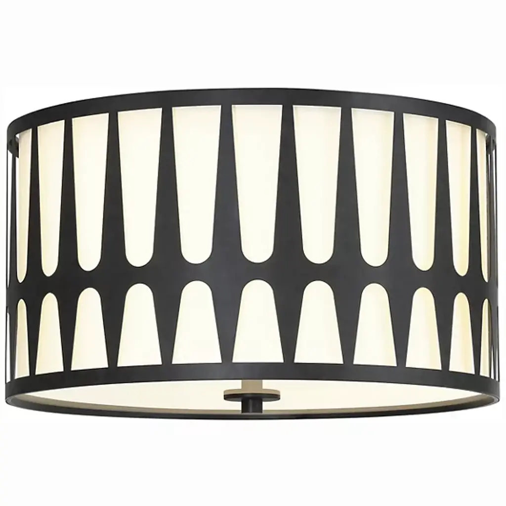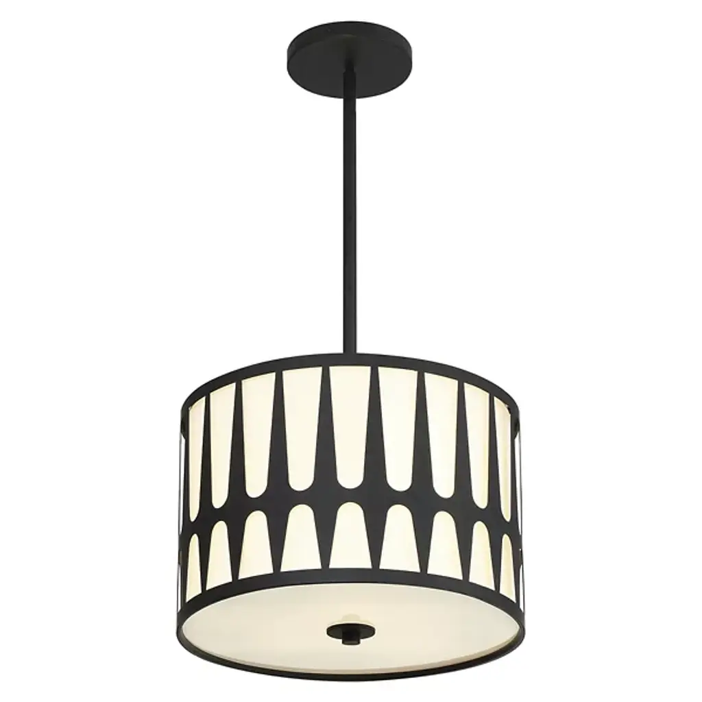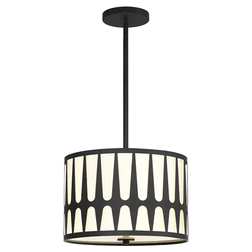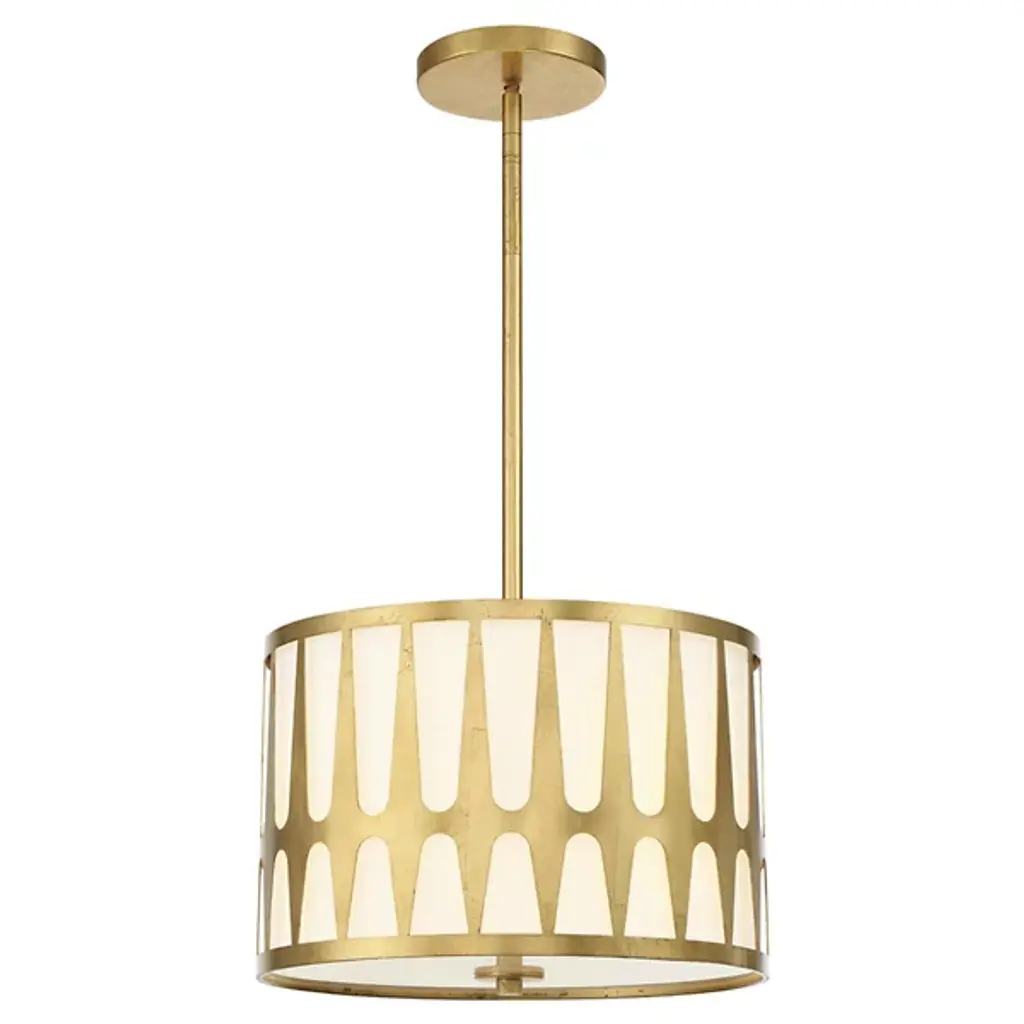 Striking and stylish, with an enduring Art Deco expressiveness, the Royston Drum Pendant from Crystorama dazzles with an artsy metal pattern overlay fronting an inner white silk shade suspended from a single downrod. This juxtaposition creates its intriguing profile, adding texture, while a glass diffuser softens direct light, casting soft illumination throughout its environment, resulting in a perfect marriage of classic and modern styles.