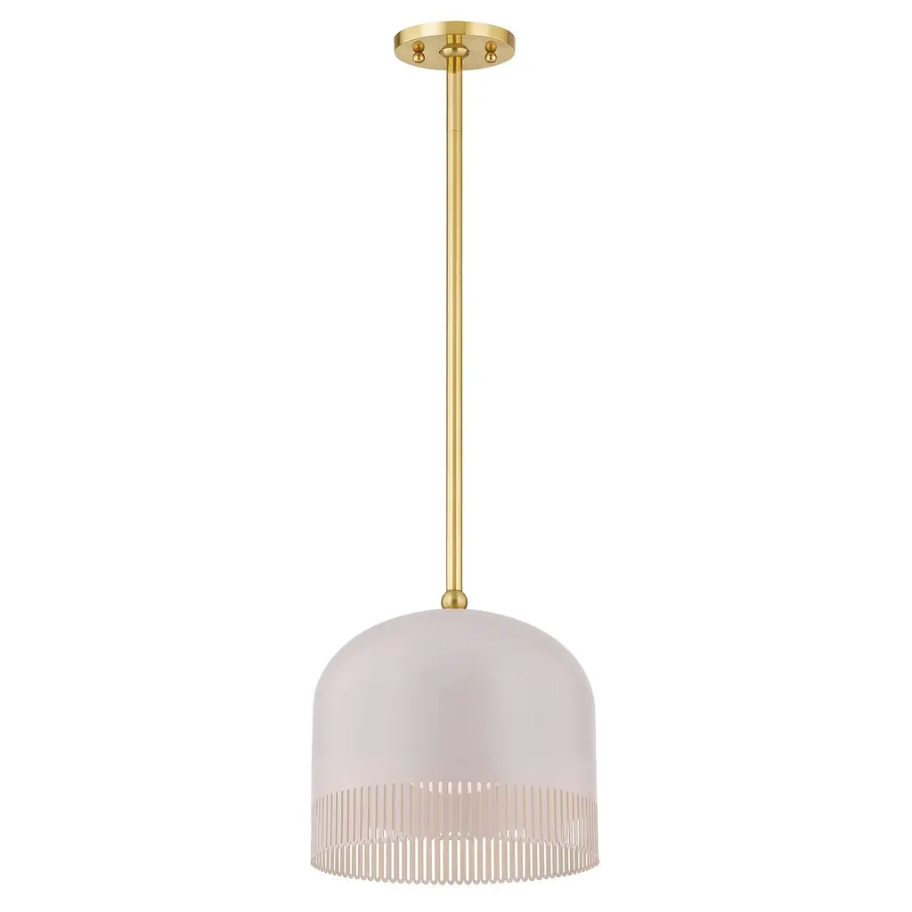 The Royston Mini Pendant from Crystorama transforms your living space with a captivating style. This fixture boasts a metal pattern overlay that adds an artistic and eye-catching element to any room. The inner white silk shade introduces a subtle texture, while the glass diffuser ensures a gentle, inviting illumination. Hang it over your kitchen island, for example, to make a bold statement and elevate your space to new heights of sophistication. Illuminate your surroundings with style and flair, turning your home into a stunning showcase of design excellence.