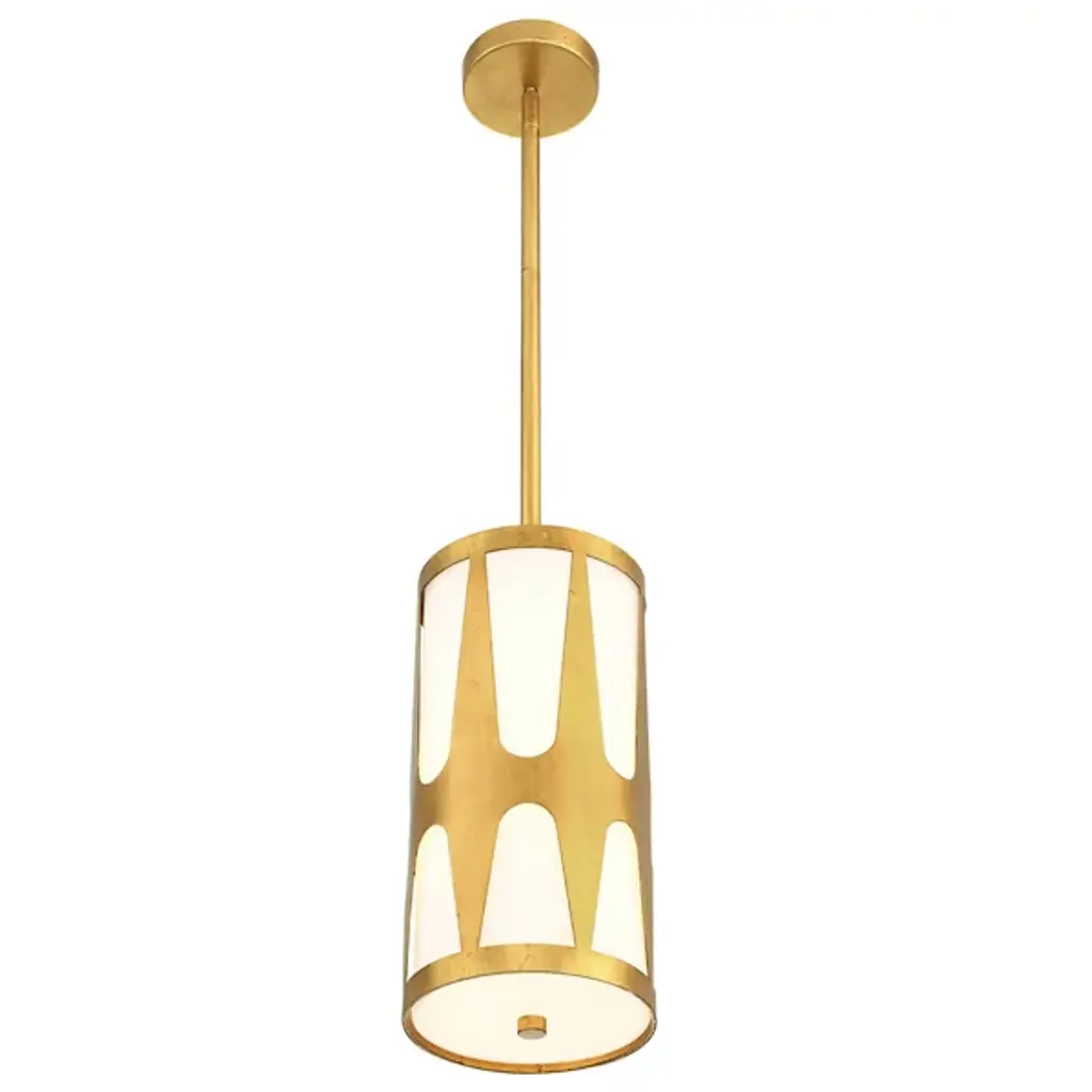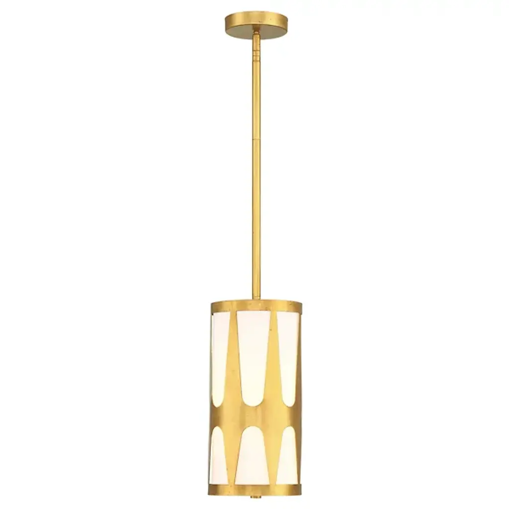 The Royston Mini Pendant from Crystorama transforms your living space with a captivating style. This fixture boasts a metal pattern overlay that adds an artistic and eye-catching element to any room. The inner white silk shade introduces a subtle texture, while the glass diffuser ensures a gentle, inviting illumination. Hang it over your kitchen island, for example, to make a bold statement and elevate your space to new heights of sophistication. Illuminate your surroundings with style and flair, turning your home into a stunning showcase of design excellence.
