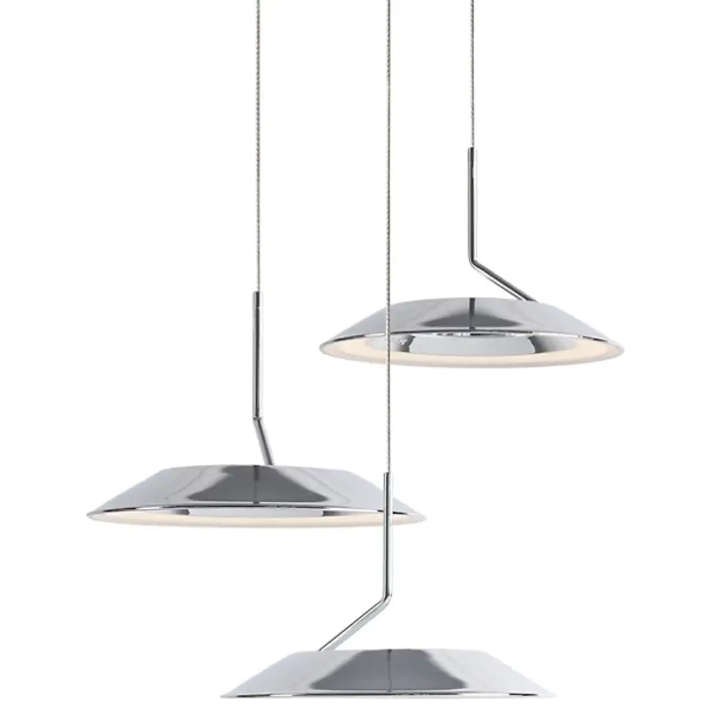 Practical meets elegance. The Royyo Pendant by Koncept is a modern addition to your home. Made from fully recyclable Aluminum, a sleek and minimal circular silhouette houses an integrated LED light source with a Glass shade. With minimal wiring and smooth lines to support this fixture, an even and bright light is distributed to surroundings. Energy efficient, this pendant is a smart and stylish compliment alone or configured in a group as an additional layer of light in living and lounge spaces.