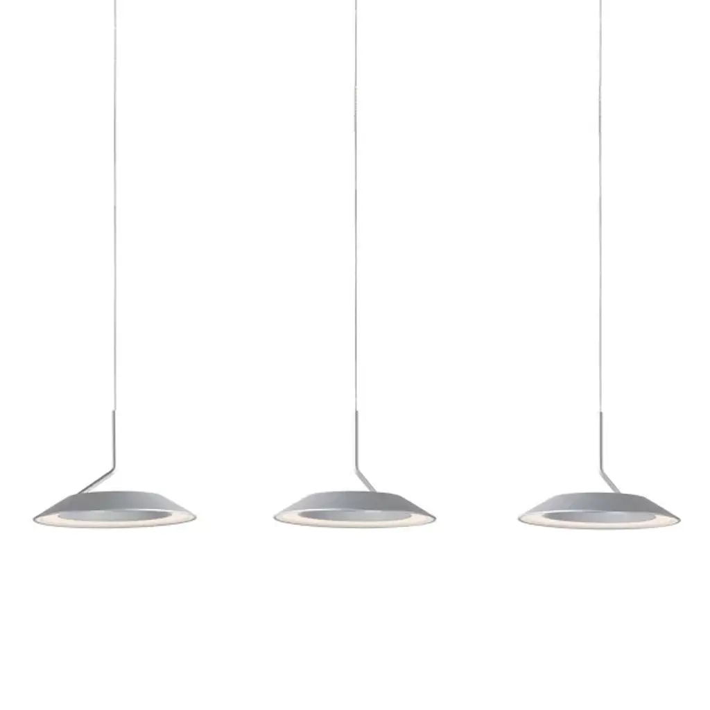 Practical meets elegance. The Royyo Pendant by Koncept is a modern addition to your home. Made from fully recyclable Aluminum, a sleek and minimal circular silhouette houses an integrated LED light source with a Glass shade. With minimal wiring and smooth lines to support this fixture, an even and bright light is distributed to surroundings. Energy efficient, this pendant is a smart and stylish compliment alone or configured in a group as an additional layer of light in living and lounge spaces.