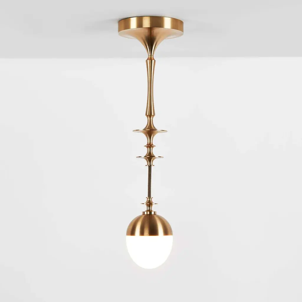 Introduce sophistication and elegance into your space with the Rue Sala Corded LED Pendant Light from Roll & Hill. Designed by Jessica Helgerson, it features a vintage-inspired design with sleek contours and energy-efficient LED lamping. The dome-shaped glass shade and brass accents create a striking contrast, illuminating your surroundings with a bold and balanced wash of ambient light. Highlights