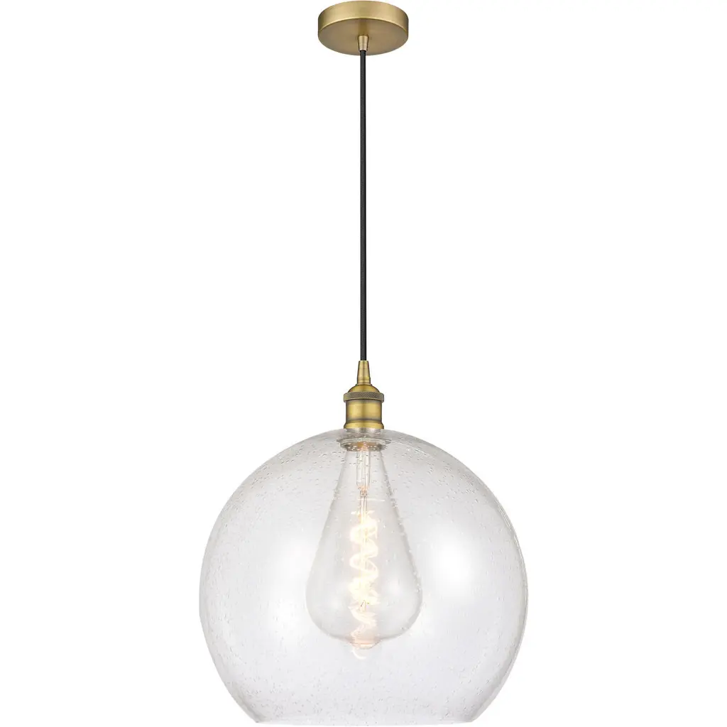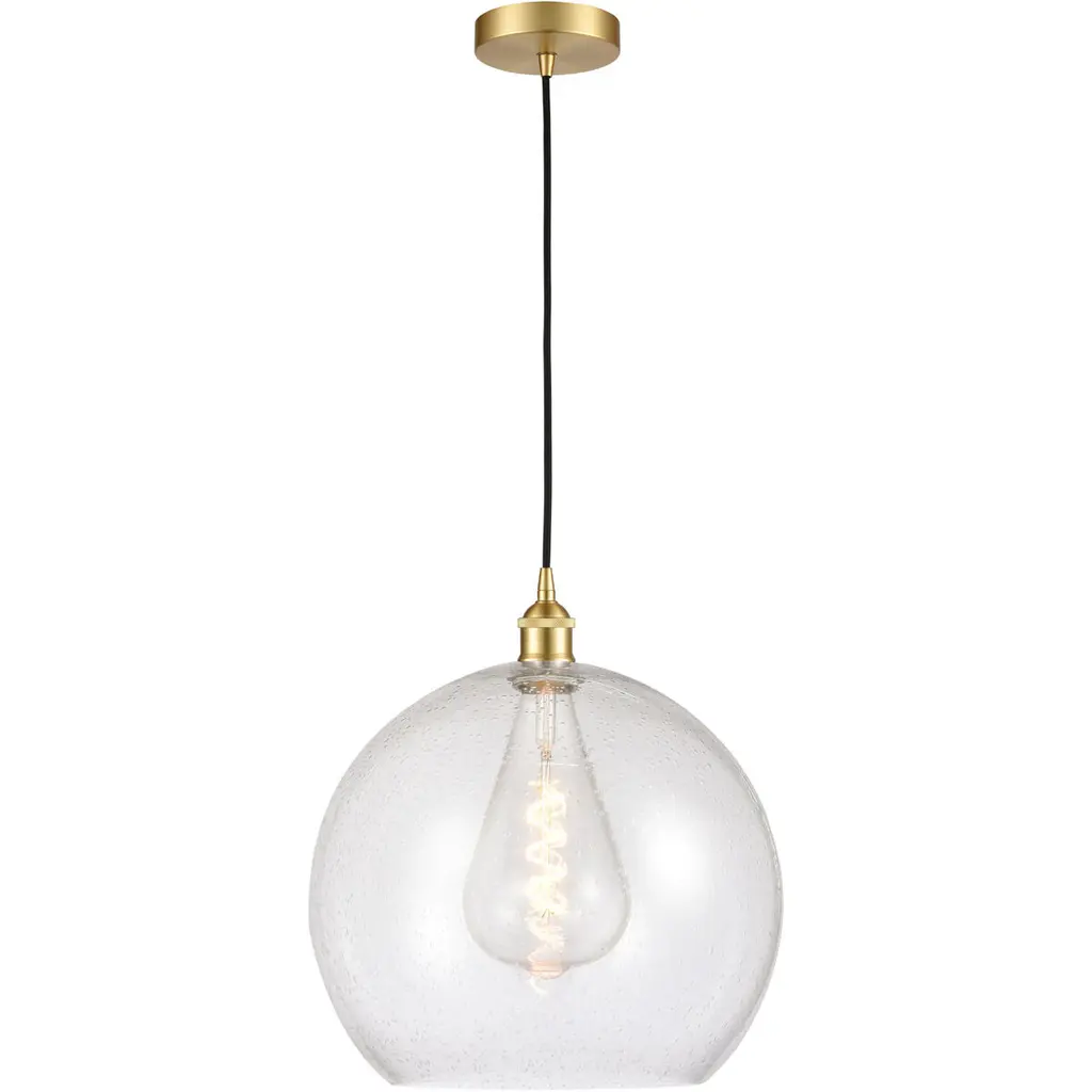Simple, stately, and stylishly refined. The Rumi Single Pendant from Lark provides lasting transitional appeal to its surroundings, sending down a single slim cord from a sleek ceiling rose to a single-socket housing below. Ideal as a single instance over a counter or table, its partial globe shade of clear seedy glass extends down around the lamping, transforming horizontal brightness to a stately sparkle that sweeps out around a focused wash of direct downlight.