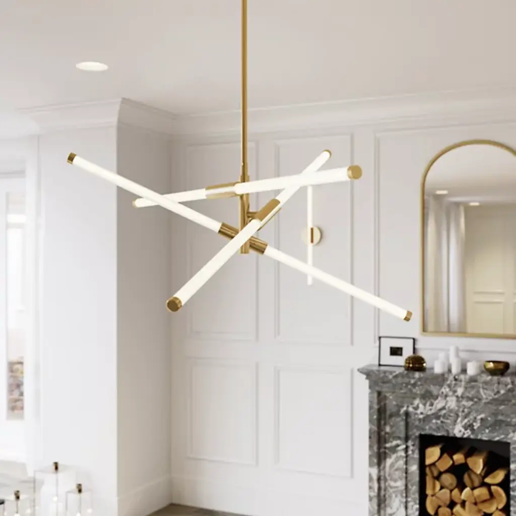 A dynamic lighting design for contemporary interiors. With 3 tumbling and overlapping acrylic tubes, the Rusnak LED Pendant by AFX Lighting evokes the classic mid-century modern starburst design. This pendant is further updated with the use of integrated LEDs, which shine broadly and evenly along the length of each tube. A steel frame and coordinating end caps provide strength and a refined finishing touch. Use this pendant light to bring energy and ambience to a dining room, living room or bedroom.
