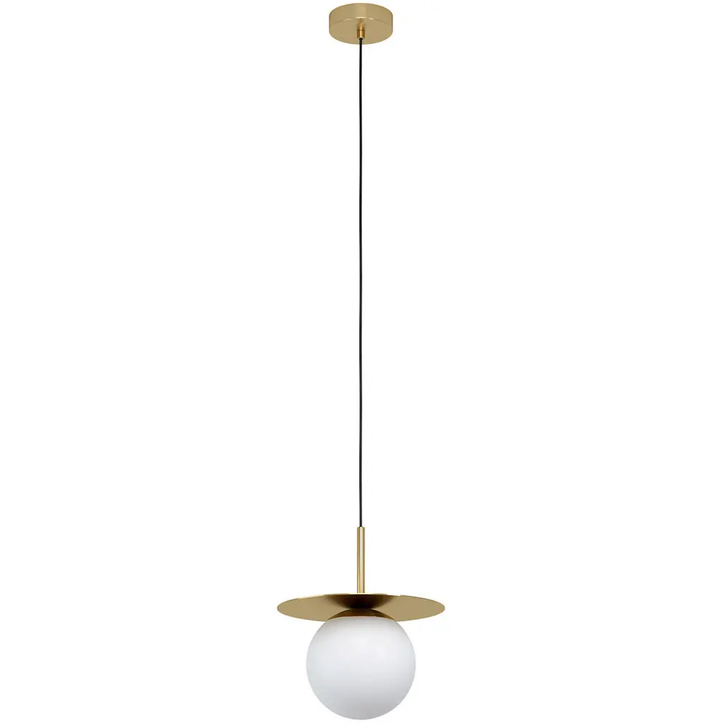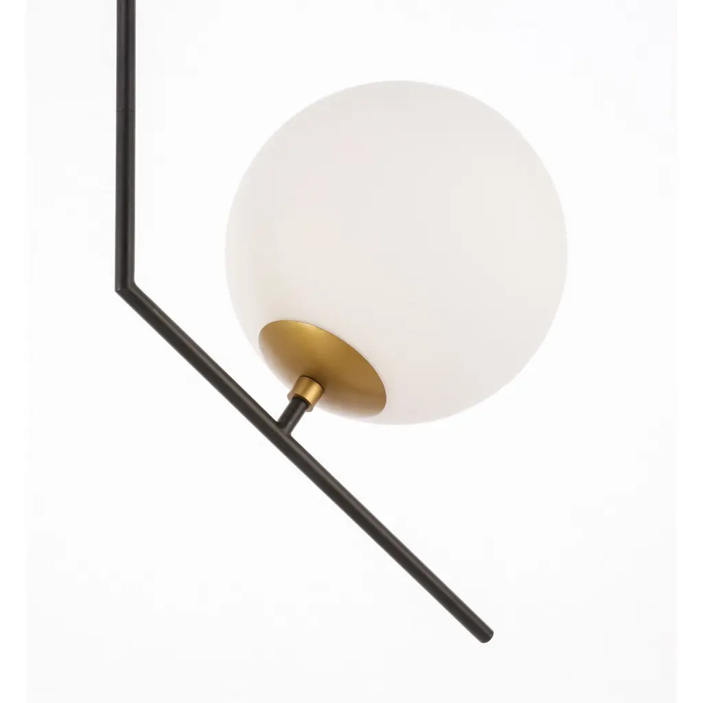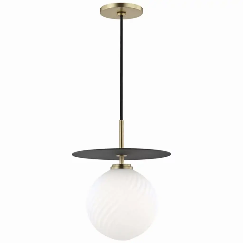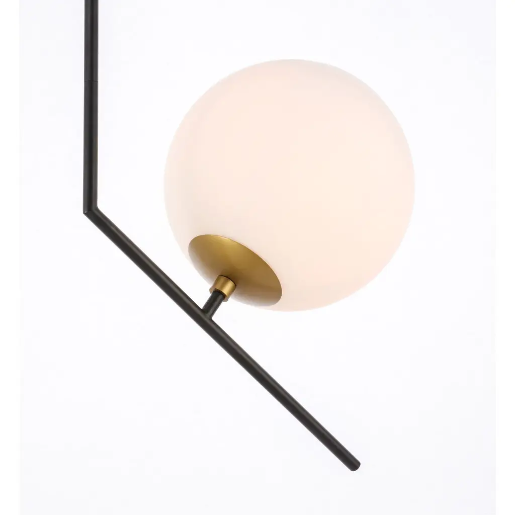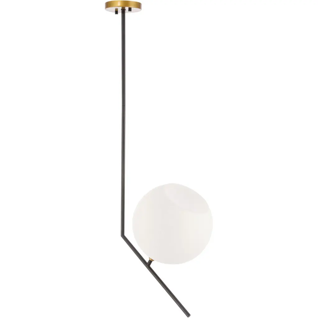 The Ryland Collection Pendant adds sophisticated elegance while still maintaining playful whimsy. The clean lines of the adjustable rod supports the light that is enclosed within the white frosted ball shade. Available in a brass, chrome, and two-toned black and brass finish, this fixture will add contemporary freshness to any room, your guests sure to notice your impeccable tastes in design (light bulbs not included).
