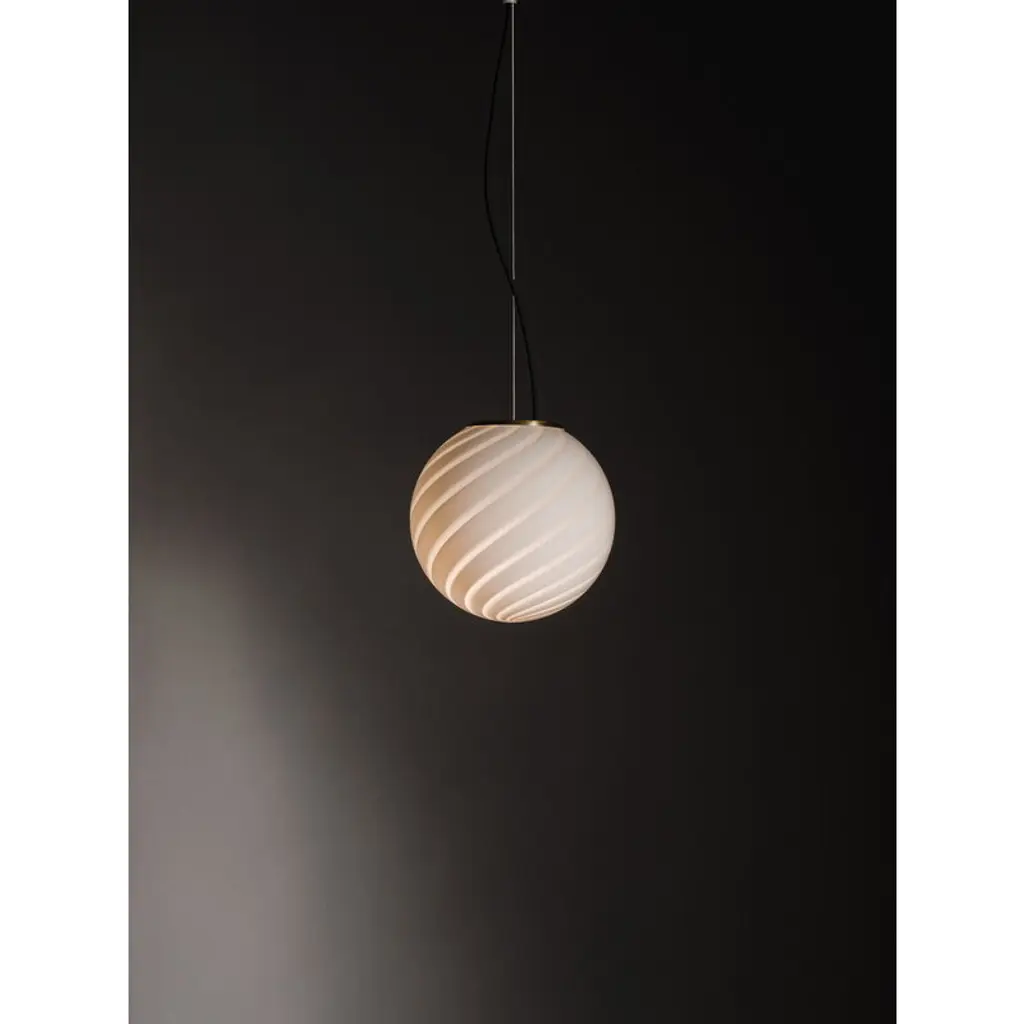 Copenhagen Venice’s S20 Vetri Murano pendant brings the beauty of Italian glass artistry and timeless sophistication into any space. The pendant’s delicate design is highlighted by a swirling pattern on the glass shade created using an original 1970s mold, casting a soft and atmospheric glow. A hand-cast brass fixture adds the perfect finishing touch to the luminaire’s refined appearance. Made from opal glass, Vetri Murano lamps are mouth-blown on the island of Murano, Venice. Known for its centuries-old glassmaking traditions, Murano is home to some of the world’s most skilled glass artisans.