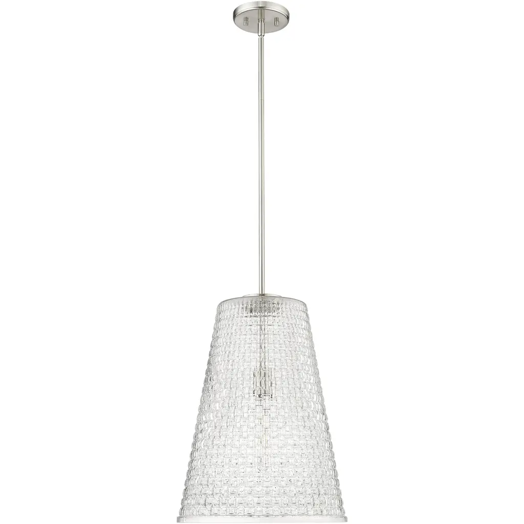 The Saben Collection of vanity and pendant lighting is pure glamour, perfect for any interior scheme from transitional modern to Art Deco. The basket-weave textured, clear glass shades create a crystal-like effect against the sleek, understated lines of the elegant fixtures, which are available in matte black, modern gold, polished nickel, brushed nickel or vintage brass. The overall result is a playful and sparking display of light.