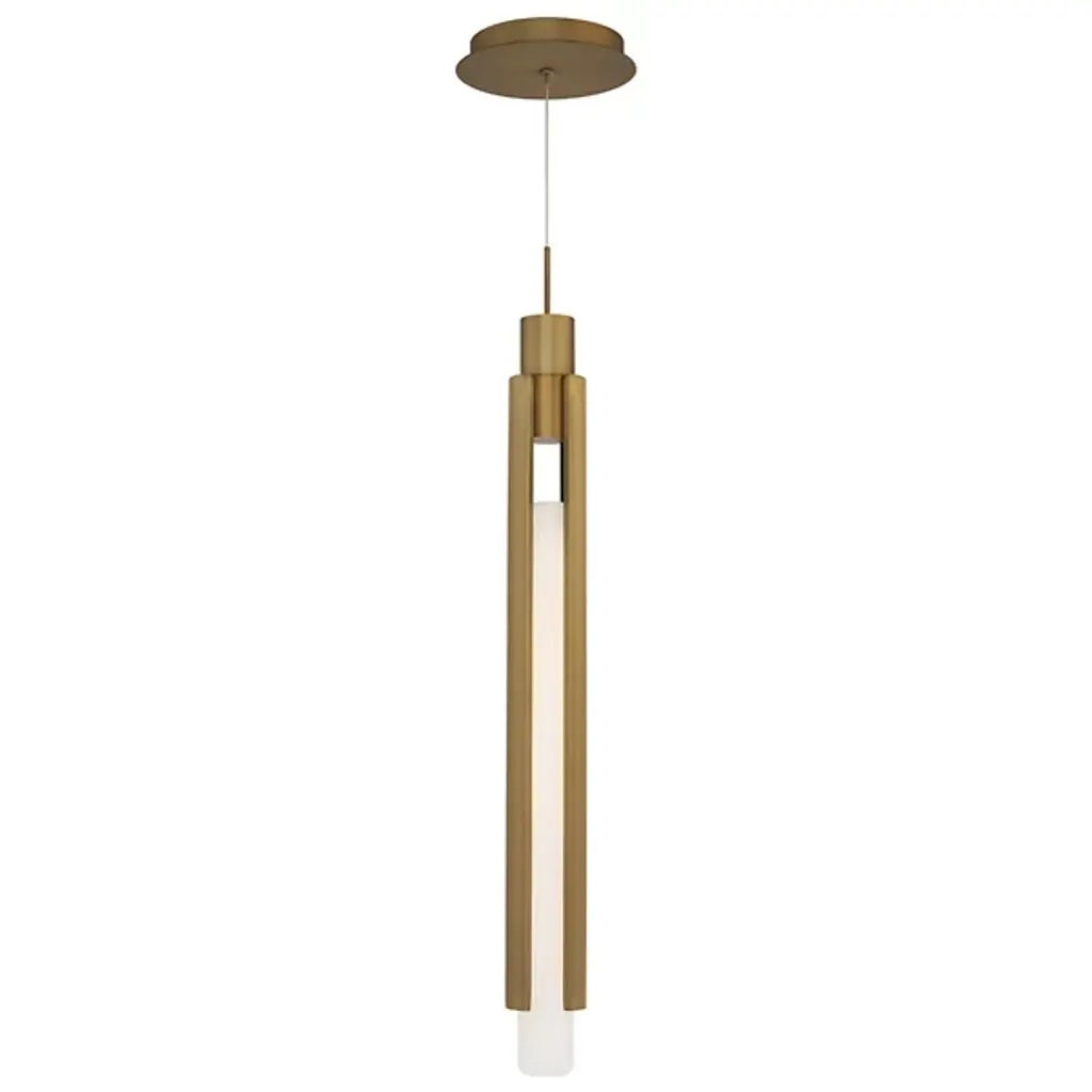 The Saber LED Mini Pendant from Modern Forms offers a cutting-edge design. This sophisticated luminaire channels warm LED light through an elegant column of Spanish alabaster encased by a gleaming wrapped band. The extruded aluminum frame pairs seamlessly with the alabaster shade, creating a warm and modern lighting experience. Ultra-sleek electrified cables eliminate the need for clunky power wires, and the height is easily adjustable with push-pin connectors on the canopy. Compatible with sloped ceilings, this pendant offers both style and functionality, enhancing any space with its refined elegance.