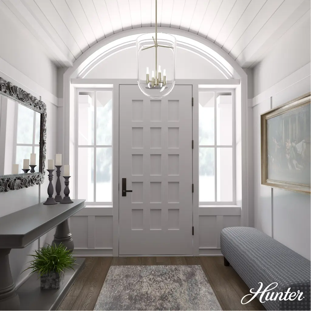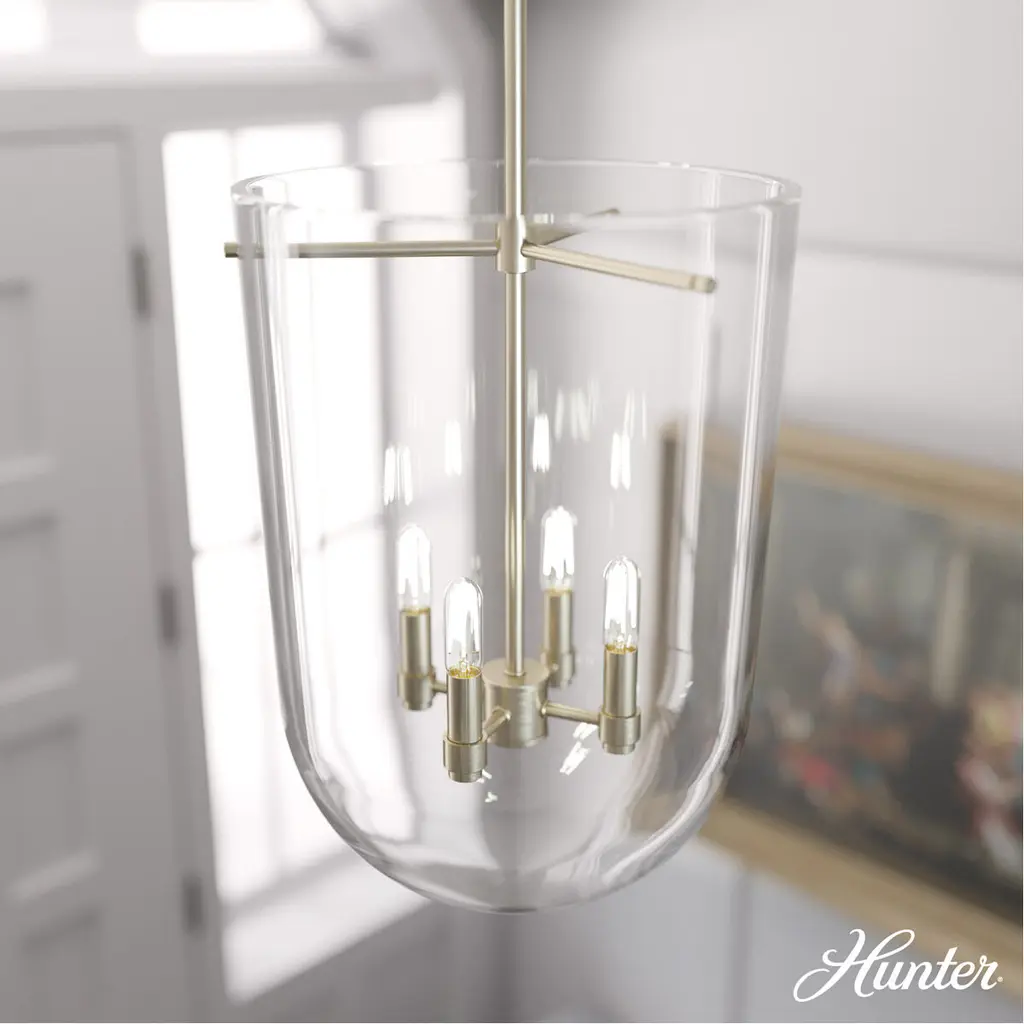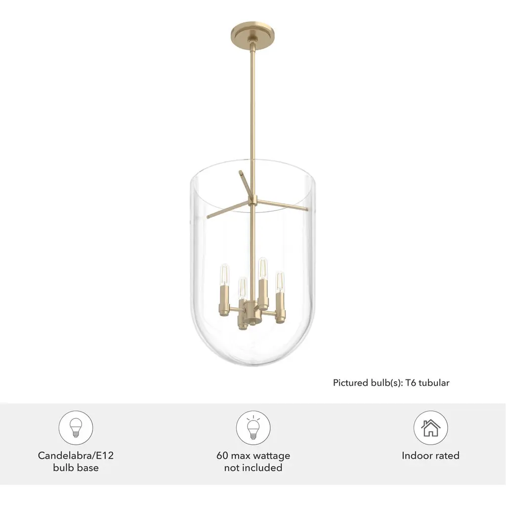 A twist on dramatic lighting. The Sacha 4-light pendant takes elements from cathedral-style lighting and adds its own modern flair. With its glamorous clear glass and bold lines, this bell-shaped pendant adds a sophisticated element to your space. Whether it is standing on its own or used in pairs, the Sacha pendant makes an elegant statement.