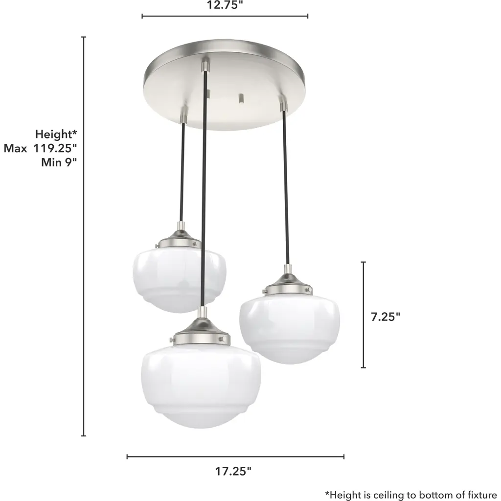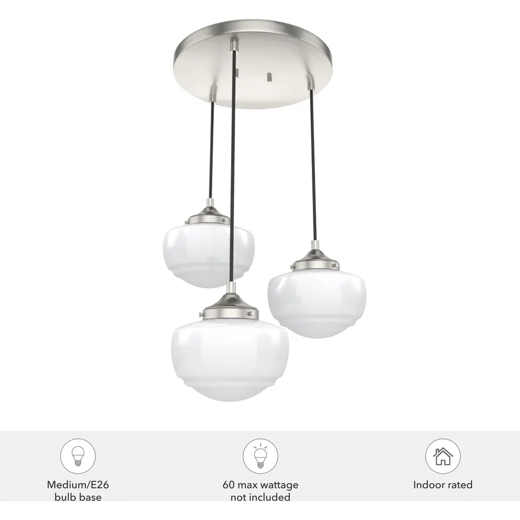 Saddle Creek 3 Light 17.25 Inch Brushed Nickel Round Cluster Pendant Ceiling Light