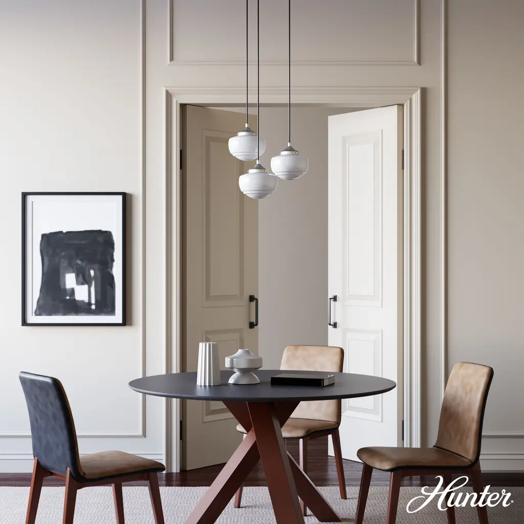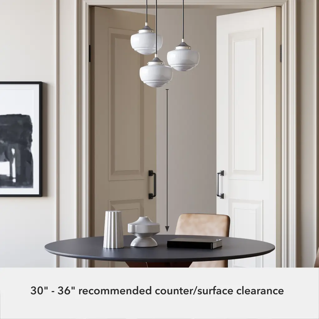 Offering an elevated take on schoolhouse style, the Saddle Creek round cluster is designed to introduce some wow factor into your living room, great room or breakfast nook. The vintage-style of the illuminating globes are balanced by the fixture’s subtle metal finish and fittings. A decorative ceiling canopy is the crowning touch on this stylish new traditional centerpiece.