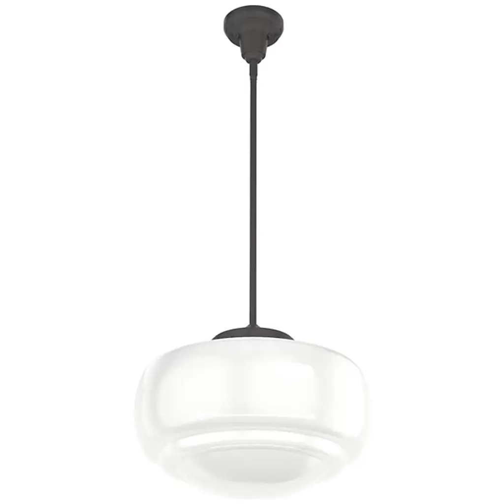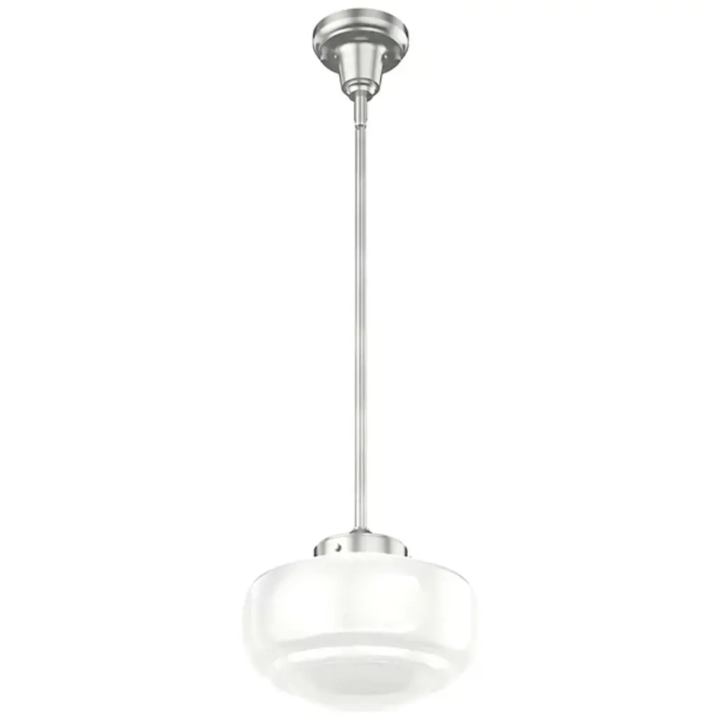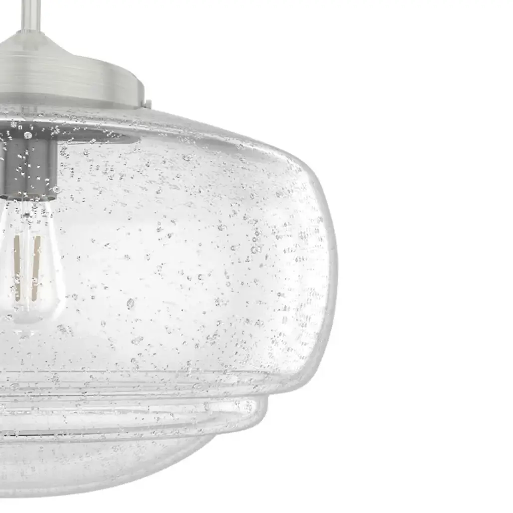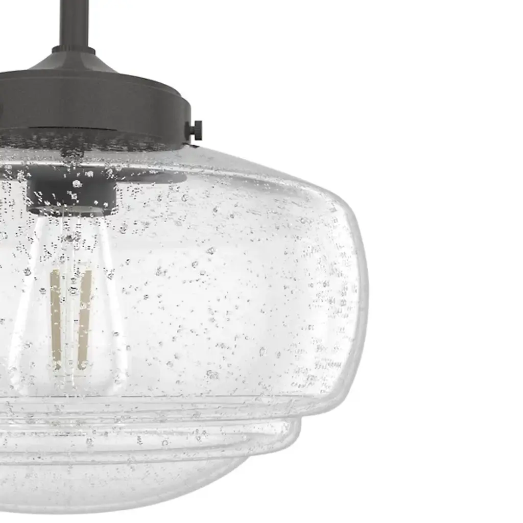 Add a clean layer of light to the décor of your modern home with the Saddle Creek Pendant from Hunter Fans. Mounting to the ceiling, this piece drops down slightly with a body made of smooth metal. The wide and clear glass shade holds a single, crisp, downward-facing bulb. The surface of the glass is speckled with a tasteful water drop pattern. The light diffuses through the glass with ease, creating a bright illumination in the space.