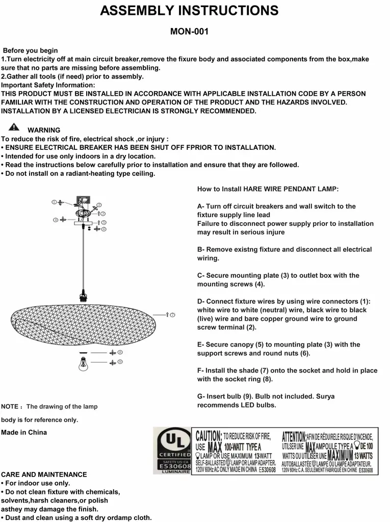 Sadzhavka Pendant - 29"l X 39"w X 83"h