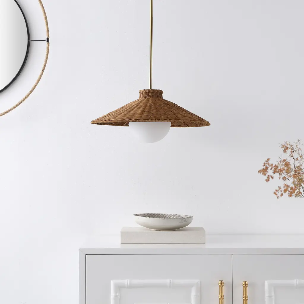 Safavieh Kalena 20-Inch Rattan & Metal Pendant - 20"w X 20"d X 48"h - Natural/brass