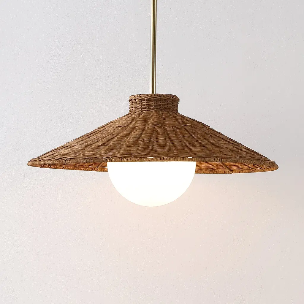 Introducing the Kalena Pendant, an elegant lighting solution that blends natural materials with a touch of sophistication. This pendant features a beautifully crafted rattan body in a charming natural color that exudes warmth and appeal. Complementing the rattan is a brass finish that adds a subtle gleam, perfect for a variety of interior spaces. Whether you are looking to illuminate your dining area, entryway, or living space, the Kalena Pendant is a fitting choice for those who appreciate natural beauty with a dash of modernity.