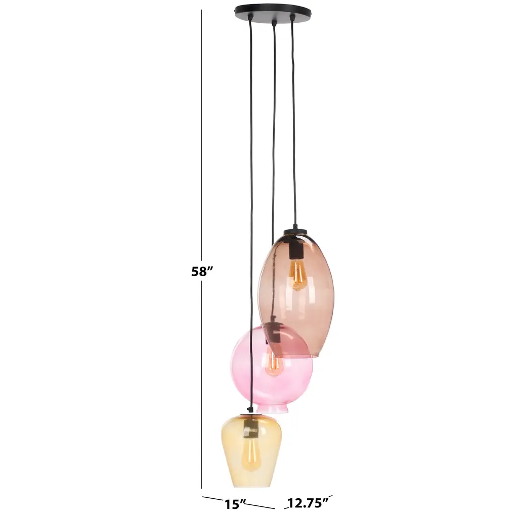 Safavieh Keoni 3 Light Glass & Iron Pendant - 13"w X 15"d X 58"h - Multi/black