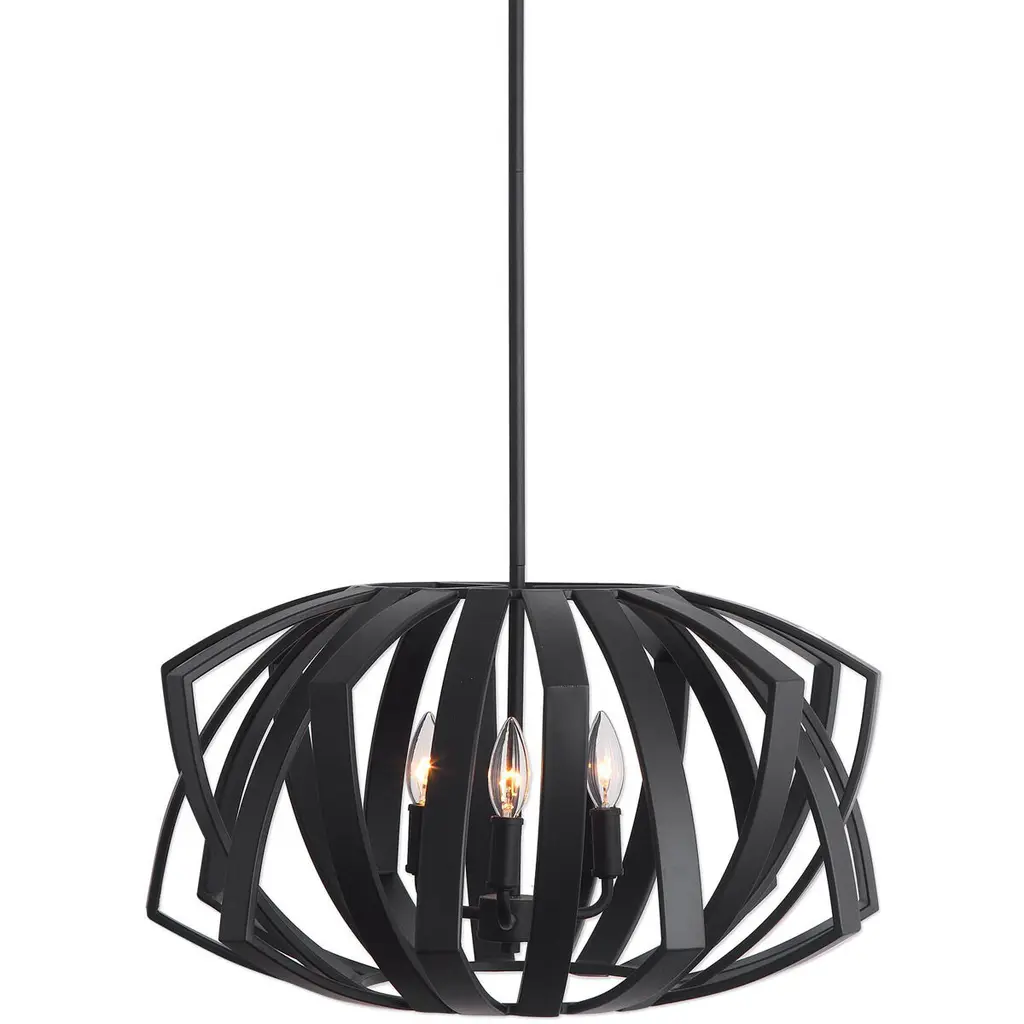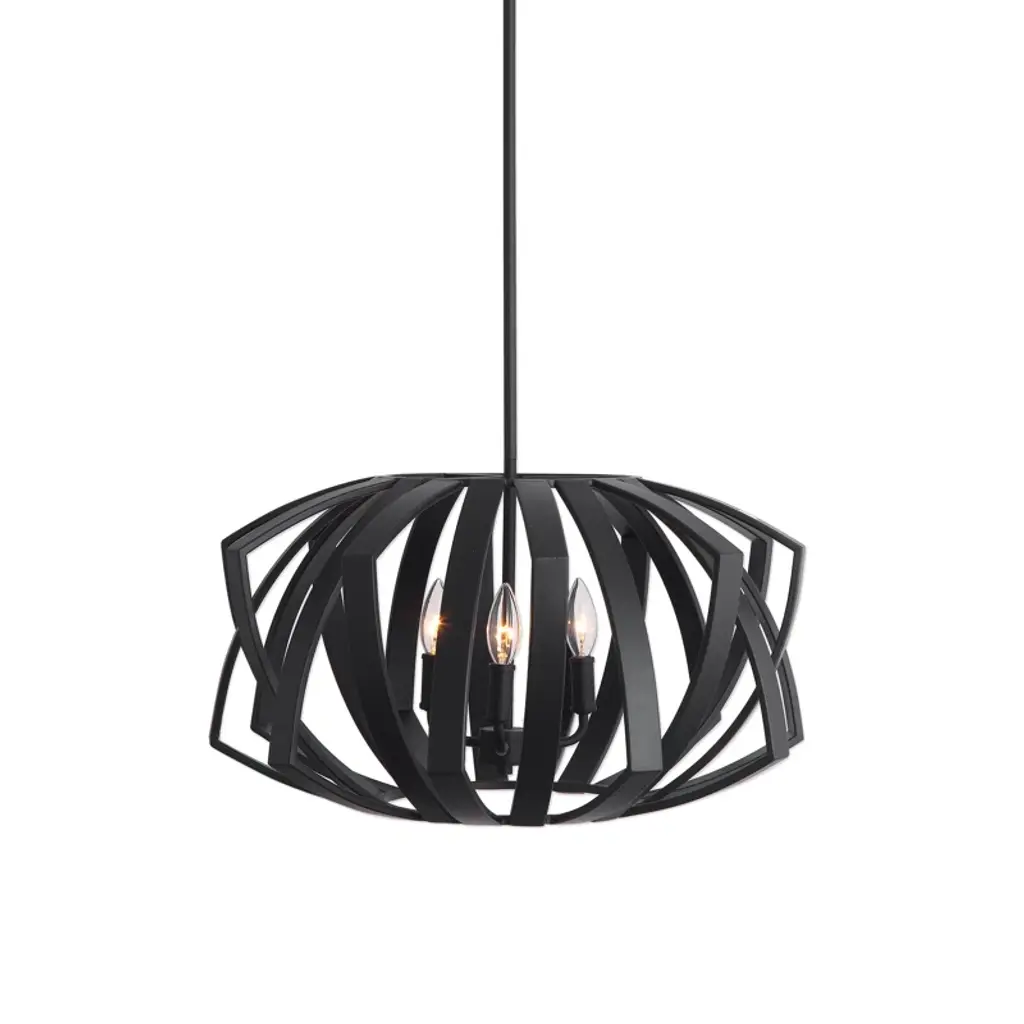 Add a touch of modern sophistication to any space with this geometric pendant light. Crafted from metal, it features a sleek design and three lights that provide ambient lighting in any room. The shade is made from metal, adding to the contemporary look. Compatible with sloped ceilings, this pendant is suitable for residential use in dry locations. Bulb not included, but a standard E12/Candelabra bulb with a maximum wattage of 60 watts is recommended. Illuminate your space with style.