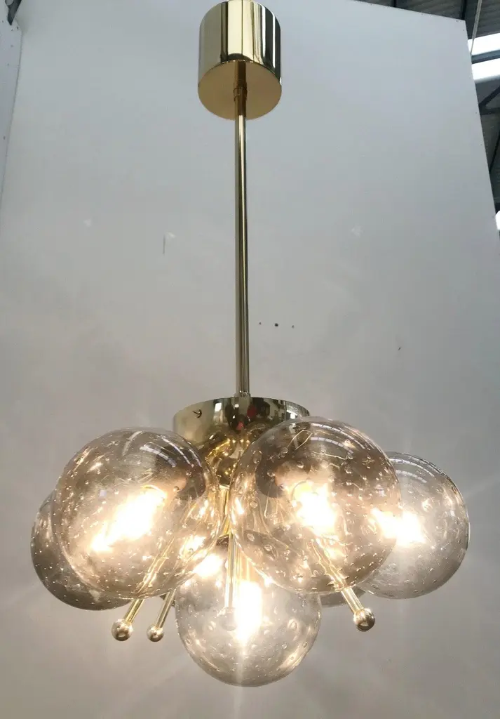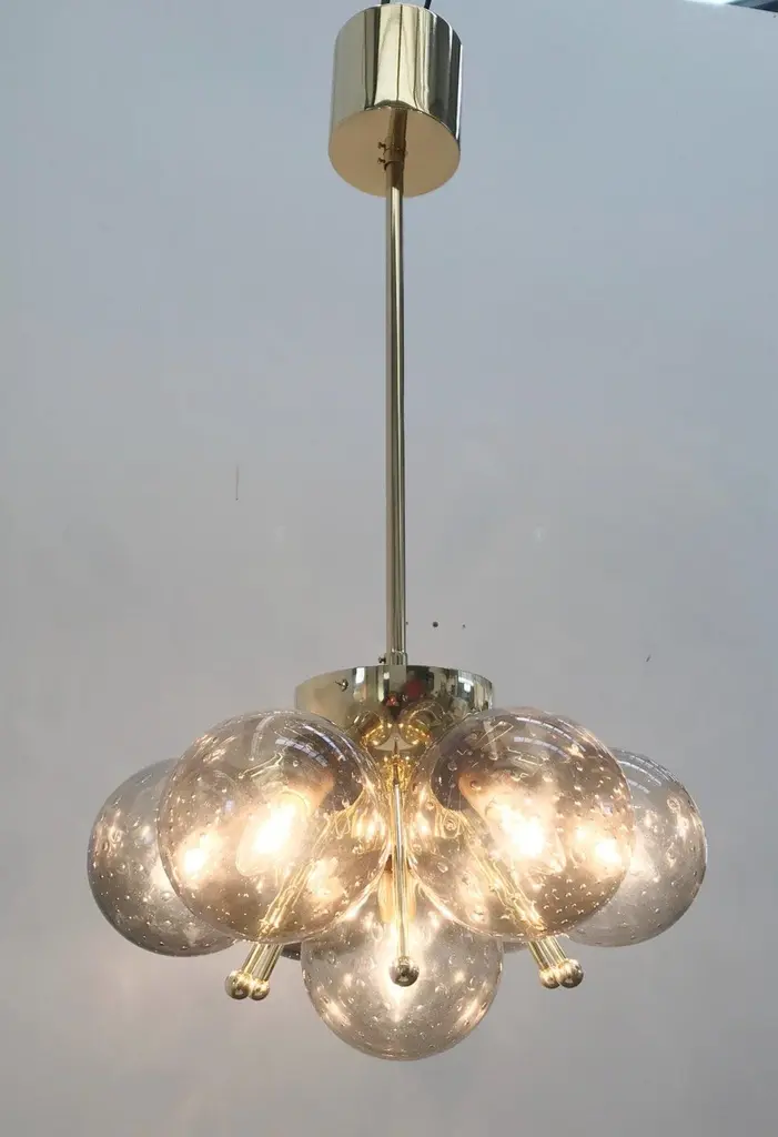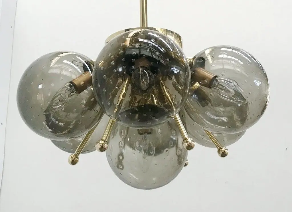 Italian pendant with Murano glass globemounted on solid brass frameDesigned by Fabio Bergomi for Fabio Ltd, made in Italy7 lights / E12 or E14 type / max 40W eachMeasures: Height 28 inches, diameter 22 inchesOrder only / this item ships from ItalyOrder Reference #: FABIOLTD SAKURA PENDANTThe listed price applies to all Brass finishes : Unlacquered Natural Brass, Unlacquered Polished Brass, Lacquered Polished Brass, Lacquered Satin BrassOther finishes available with upcharge of $300 : Bronzed, Polished Chrome, Satin Chrome, Polished Nickel, Satin Nickel, Polished Black Nickel, Satin Black Nickel, Polished Copper, Satin Copper