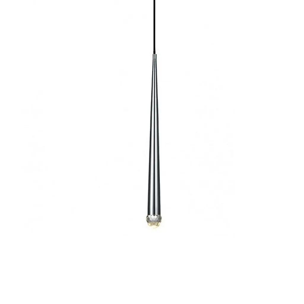 The Salve LED Mini Pendant Light by Huxe brings a gleaming touch of charm to spaces through its slender profile and sparkling accenting. Constructed from stainless steel, this piece drops from a thin black cord as its tapered body culminates in a faceted clear glass shade. An integrated LED light source emits a beam of light is refracted through the glass for a dazzling effect. Elegant as a single fixture, this piece can be combined with others to create striking visual structures.