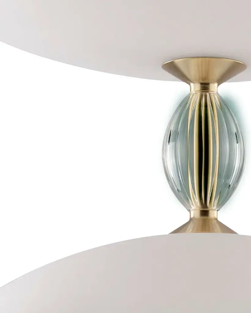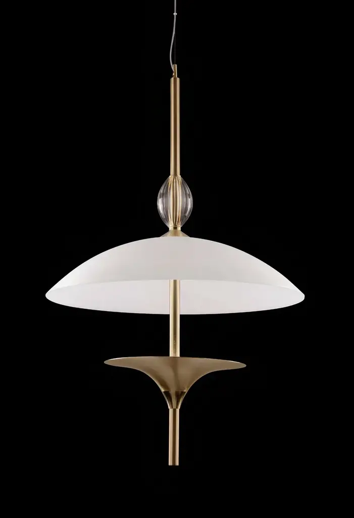 Sama is a pendant lamp with metal and aluminum components turned on custom drawing. Domes in curved technical glass made in Veneto. Opal plexiglass diffusers. Do not hesitate to contact us for any request or different version.A perfect fusion of art and tradition. Inspired by Sufi dance, it reproduces the sinuous shape of the rotating dervish, creating a feeling of movementMetal and aluminum components turned on custom drawing. Domes in curved technical glass made in Veneto. Opal plexiglass diffusers.Other colors on request. Sama large: 3 spotled 30W - 4000°K - 220 Vdc 3000 lm - life time 40.000 hrs - Dimmable: yesSama medium: 2 spotled 20W - 4000°K - 220 Vdc 2000 lm - life time 40.000 hrs - Dimmable: yesSama small: 1 spotled 10W - 4000°K - 220 Vdc 1000 lm - life time 40.000 hrs - Dimmable: yes