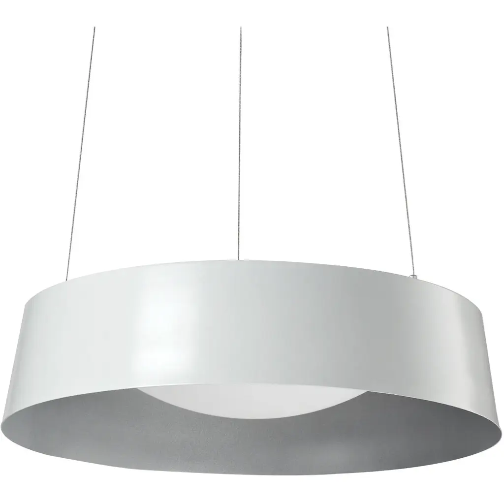 The Sampson pendant envelops a luminous opal dome that casts light down and outward, showcasing the metallic inner shade coating. Contrasting the powder-coated interior the substantial surfaces of the drum exterior are matte, emphasizing the visual impact of the lamp. Available in two curated color combinations, Black with Gold or White with Silver.