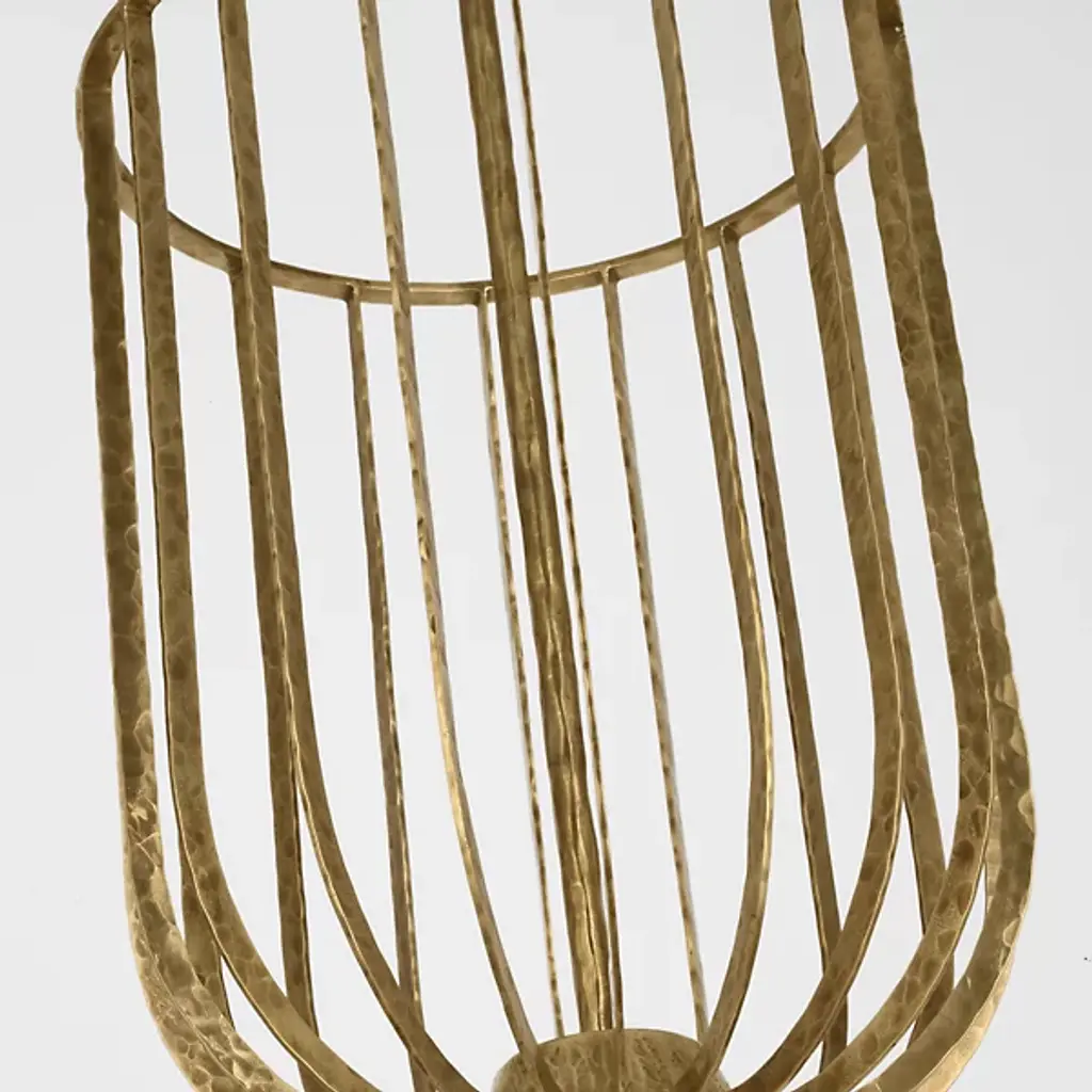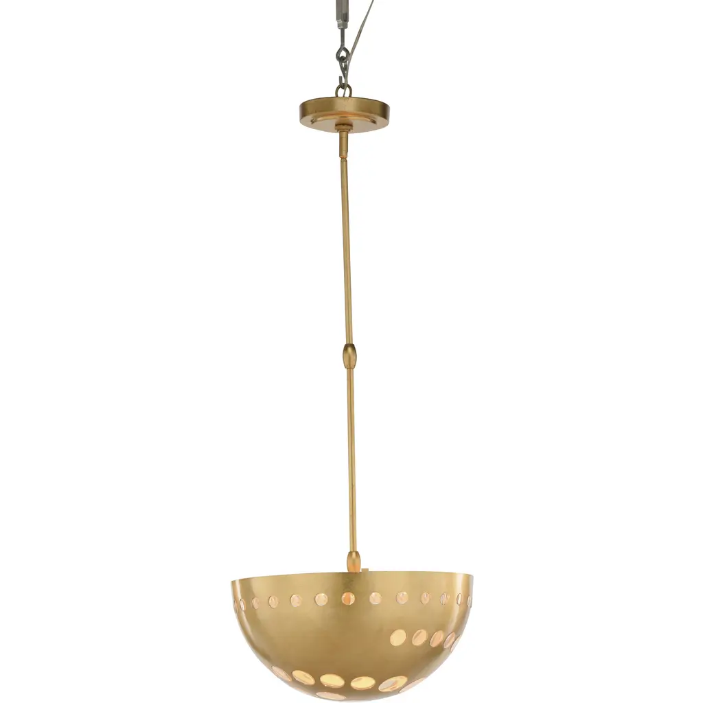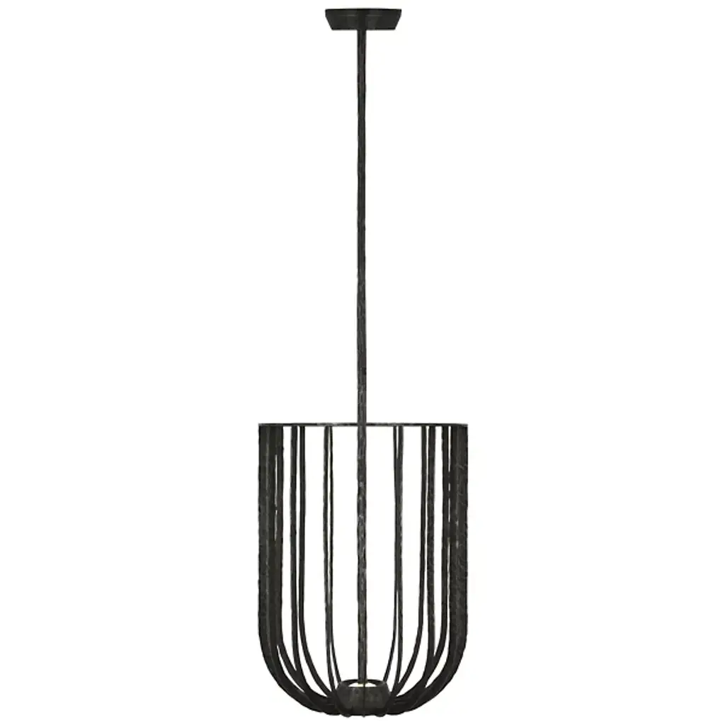 The Sanchi LED Pendant from Visual Comfort Modern is a memorable embodiment of rustic elegance. Designed by Sean Lavin, its bowl-shaped design features an open, metal framework anchored by a sleek, beveled canopy and support stem. Each element is hand-hammered by skilled artisans, adding texture, depth, and character to the piece while also shimmering in the light of a central integrated LED light source.