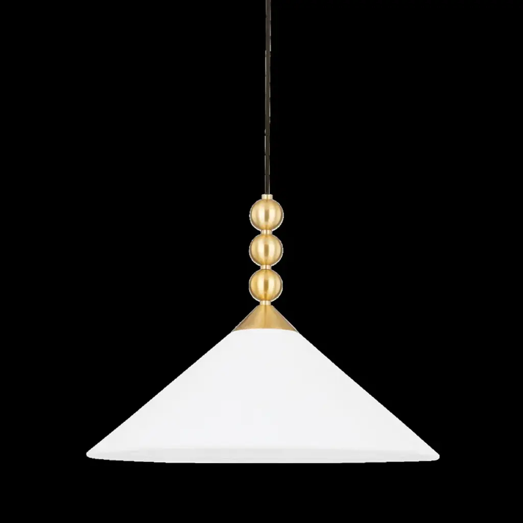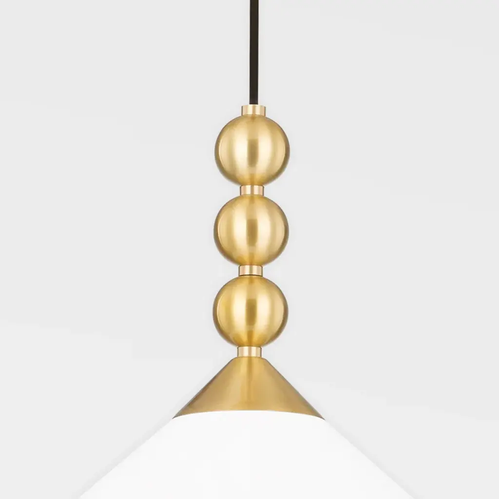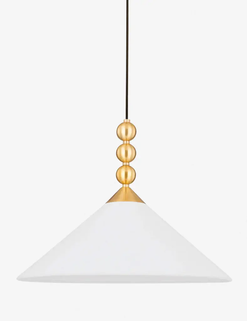 Sang is jewelry-inspired lighting at its finest. The sleek, curved arms and decorative gold balls, both solo and in groups of three, give the overall silhouette a definite drop earring vibe. Finished in aged brass with a white linen shade and available as a pendant, wall sconce or floor lamp, there's a Sang to accessorize every room.