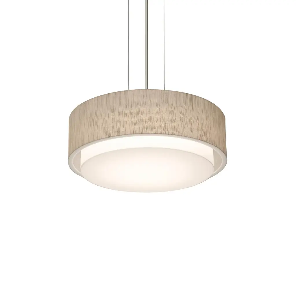 The Sanibel LED Pendant Light from AFX presents a striking modern double-layer drum design, featuring a Lumafuse™ laminated fabric and acrylic shade available in two elegant colors. Its white bottom acrylic diffuser softly disperses light for a balanced glow. Equipped with adjustable stems and a swivel canopy, it easily adapts to ceilings with up to a 60-degree slope, making it a sophisticated choice for contemporary interiors. Highlights
