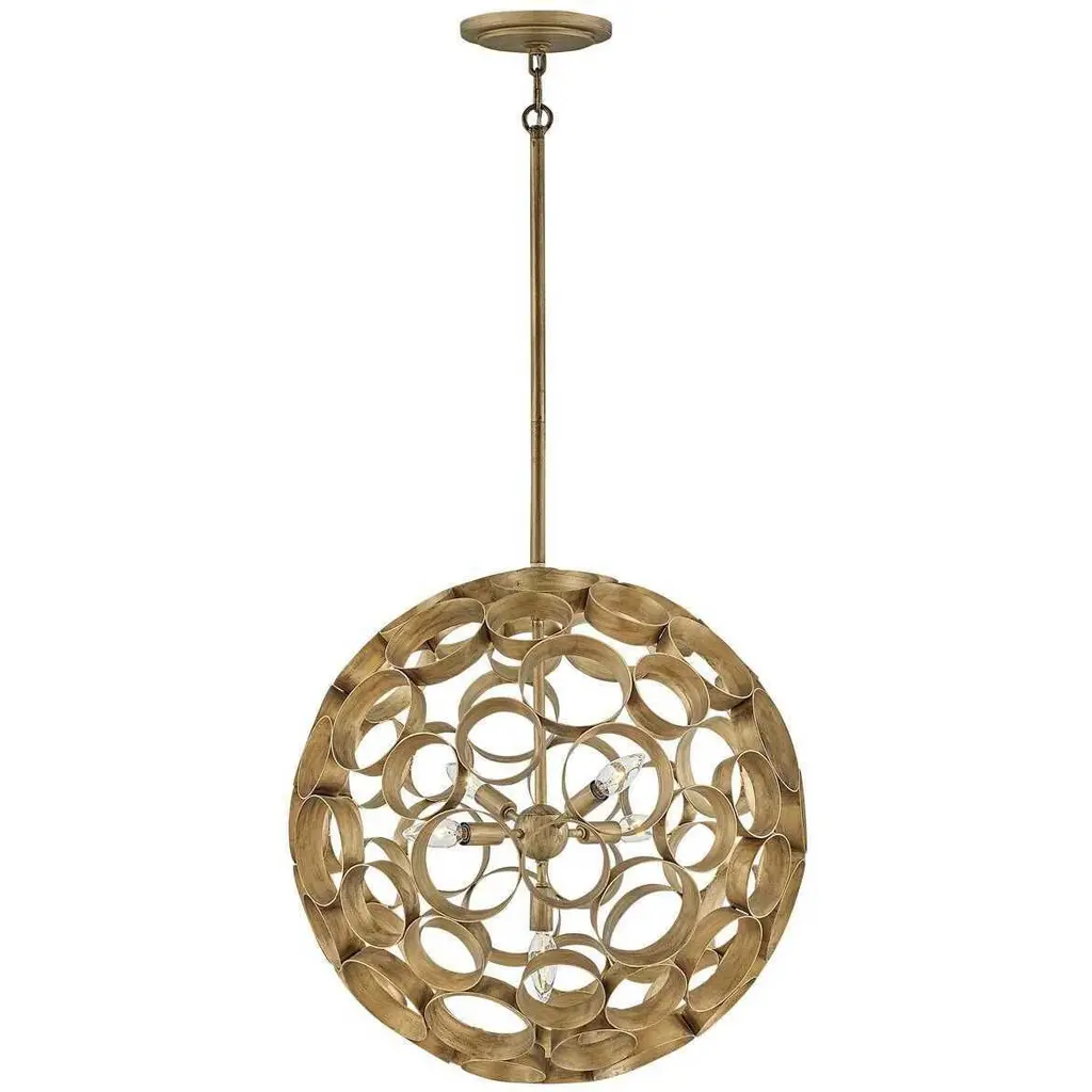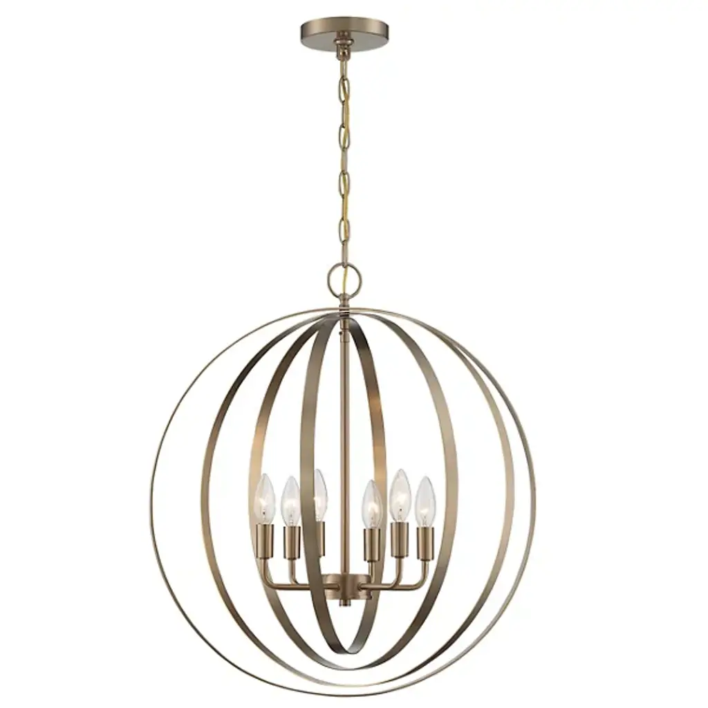 Enliven your interiors with the smooth and stylish Santina Pendant from Alder & Ore. An elegant transitional design suspended from above by a sleek disc canopy and a medium-weight chain, it places a single downward-facing lamp inside an elegant shade formed out of a series of concentric, vertical rings. These rings can be positioned in a variety of alignments around the lamping, transforming direct glare to a generous glow interspersed with stylish shadows.