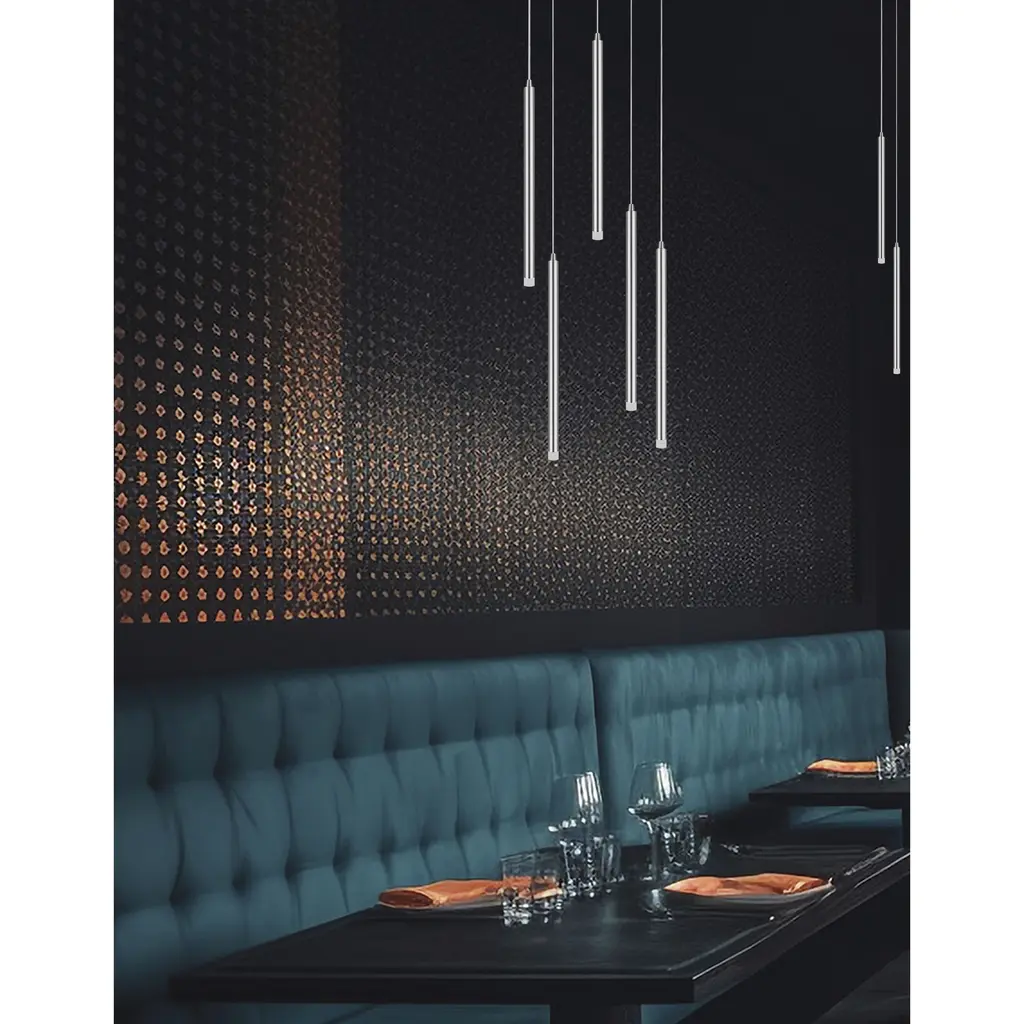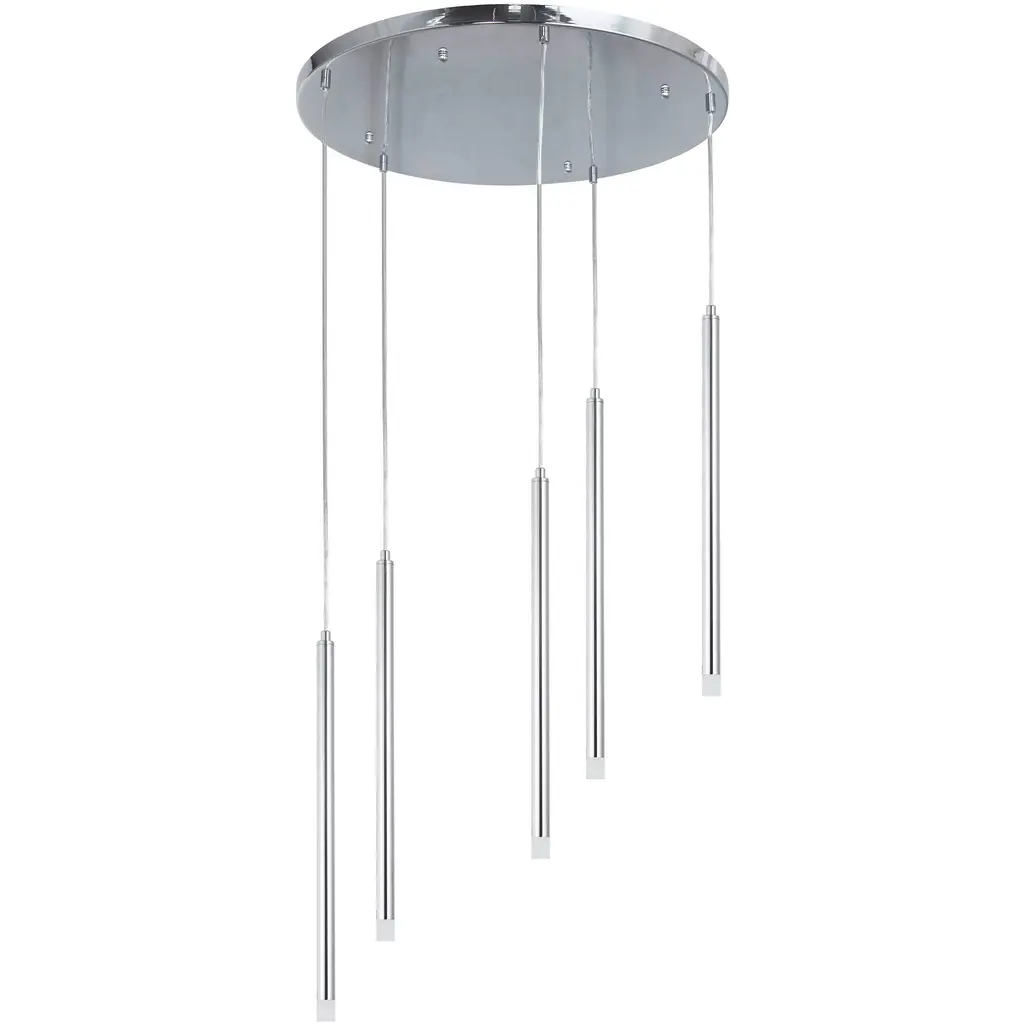 The Sanya 5 Light LED Multi Pendant by Dainolite brings a blend of modern design and functionality to your space. Crafted from metal and acrylic, this pendant features a sleek, cylindrical shape that adds an elegant touch to any kitchen, foyer or hall. The integrated LED technology ensures efficient lighting, making it an ideal choice for dinette, bars and other gathering spaces.