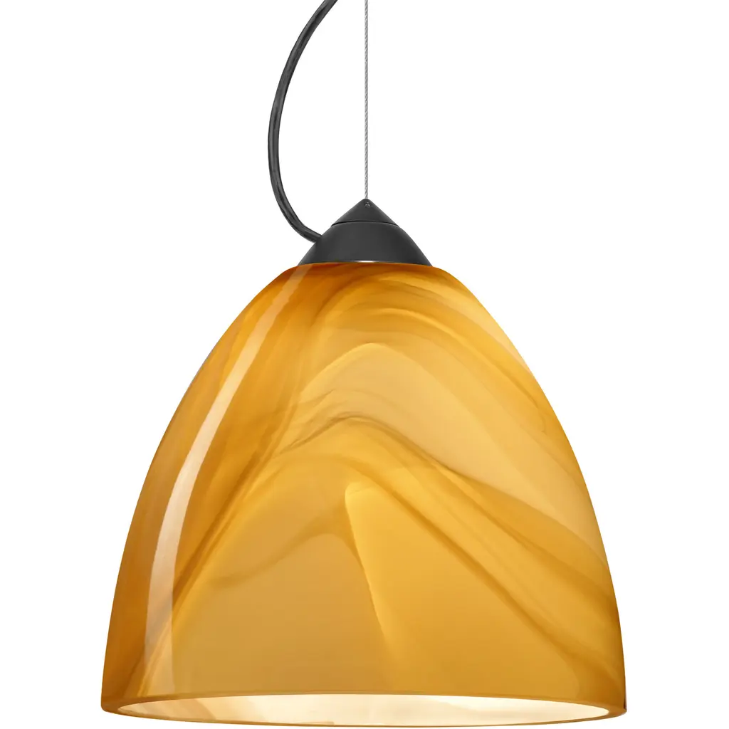 Sasha has a classical bell shape that complements aesthetic, while also built for optimal illumination. This unique décor is handcrafted, with layered swirls of yellow-amber and golden-brown against white, finished to a high gloss. Its classic swirl pattern and high gloss surface has a truly florid gleam. Honey is a hand-blown glass designed to have a shiny and polished finish. The glass is gathered and rolled into shape a unique pattern is formed that cannot be replicated. This blown glass is handcrafted by a skilled artisan, utilizing century-old techniques passed down from generation to generation. Each piece of this décor has its own unique artistic nature that can be individually appreciated. The cord pendant fixture is equipped with a 10' SVT cordset and a low Profile flat monopoint canopy. These stylish and functional luminaries are offered in a beautiful Black finish.