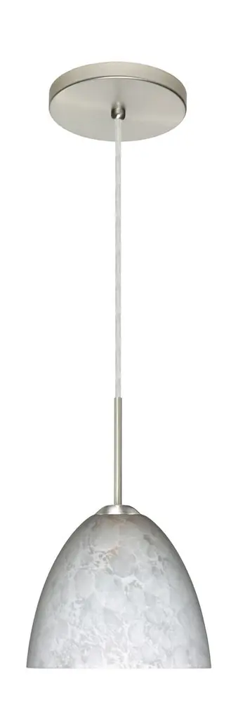 Sasha II has a classical bell shape that complements aesthetic, while also built for optimal illumination. Our Carrera glass is a classic yet modern décor that gives off a soft white light. Clear molten glass is rolled in alabaster powder like frit, and then blown into shape with a semi-clear frosted white inner finish. This décor is created by rolling molten glass in small bits of white called frit. The smooth satin finish on the clear outer layer is a result of an extensive etching process. This blown glass is handcrafted by a skilled artisan, utilizing century-old techniques passed down from generation to generation. Each piece of this décor has its own artistic nature that can be individually appreciated. The cord pendant fixture is equipped with a 10' SVT cordset and a low Profile flat monopoint canopy. These stylish and functional luminaries are offered in a beautiful Satin Nickel finish.