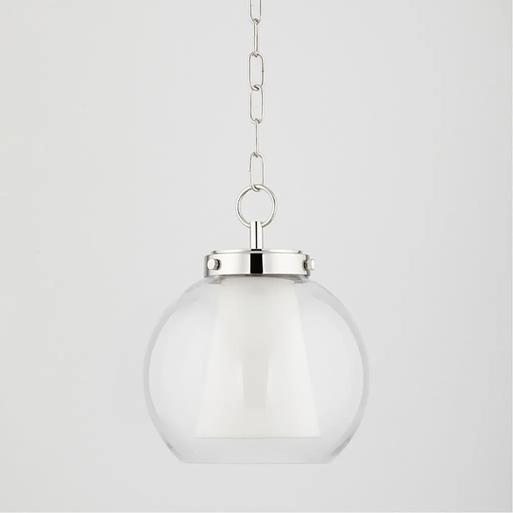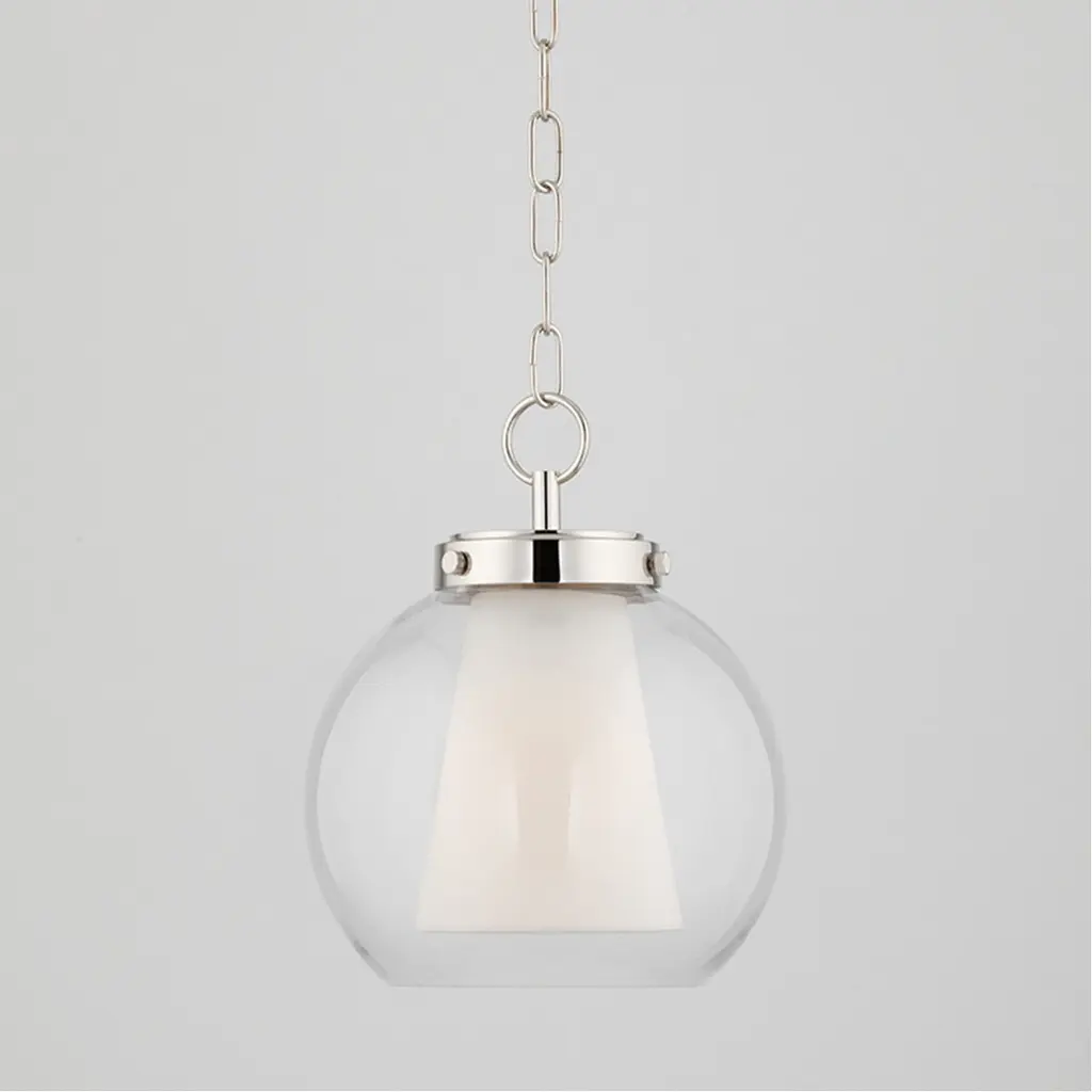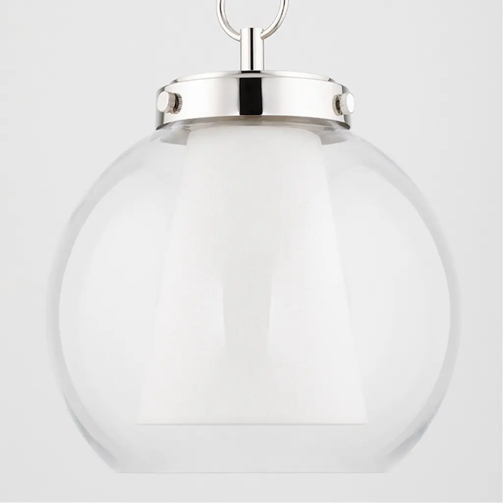 A chain cord, metal finish canopy and unique shade-within-a-shade design make this Sasha totally fierce. A white, Belgian-linen, cone-shaped shade is covered by a clear glass globe shade to emit a soft glow that shines bright. With two pendant sizes in three finishes (Aged Brass, Old Bronze and Polished Nickel) there's something for every space and taste.